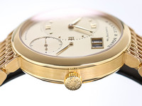 We are delighted to present this superb and increasingly desirable A. Lange & Söhne Lange 1 Reference 151.021, crafted in solid 18k yellow gold and fitted with its elegant Milanese-style bracelet — a rare and visually striking configuration that enhances the sculptural purity of one of the most important watch designs of the modern era.