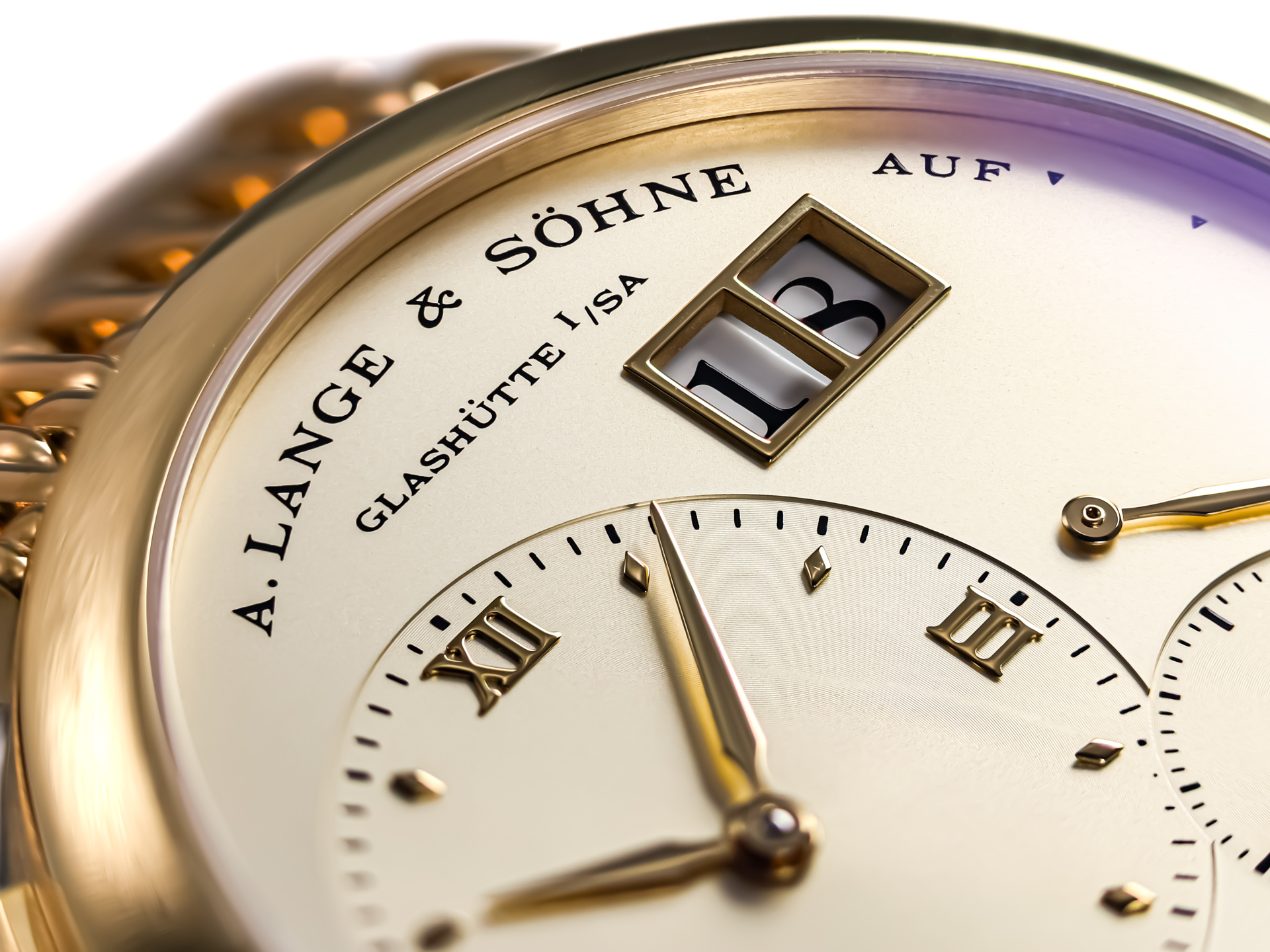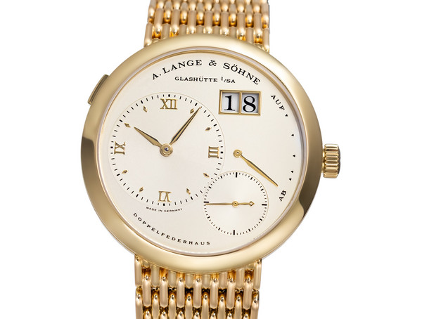 Early yellow-gold Lange 1 examples with full sets and rare bracelet configurations are increasingly scarce, and pieces accompanied by recent manufacture service carry exceptional desirability for collectors of high German watchmaking.