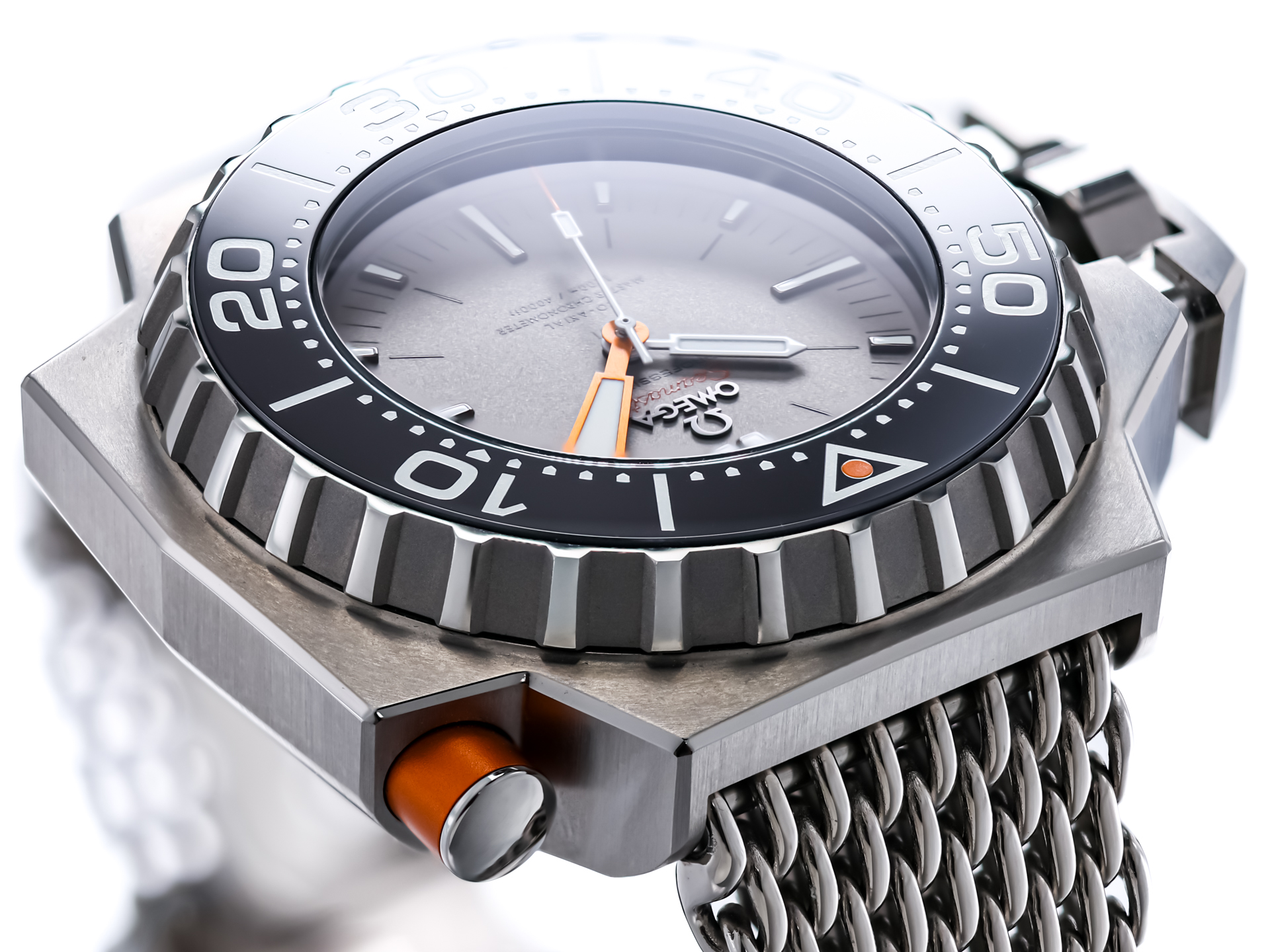 This clever modern execution is manufactured entirely in lightweight yet robust titanium, offering superior wearability despite its substantial presence. The asymmetrical case design, measuring 55 x 45 mm, is instantly recognizable and purpose-built for extreme underwater conditions, combining uncompromising functionality with a striking aesthetic.