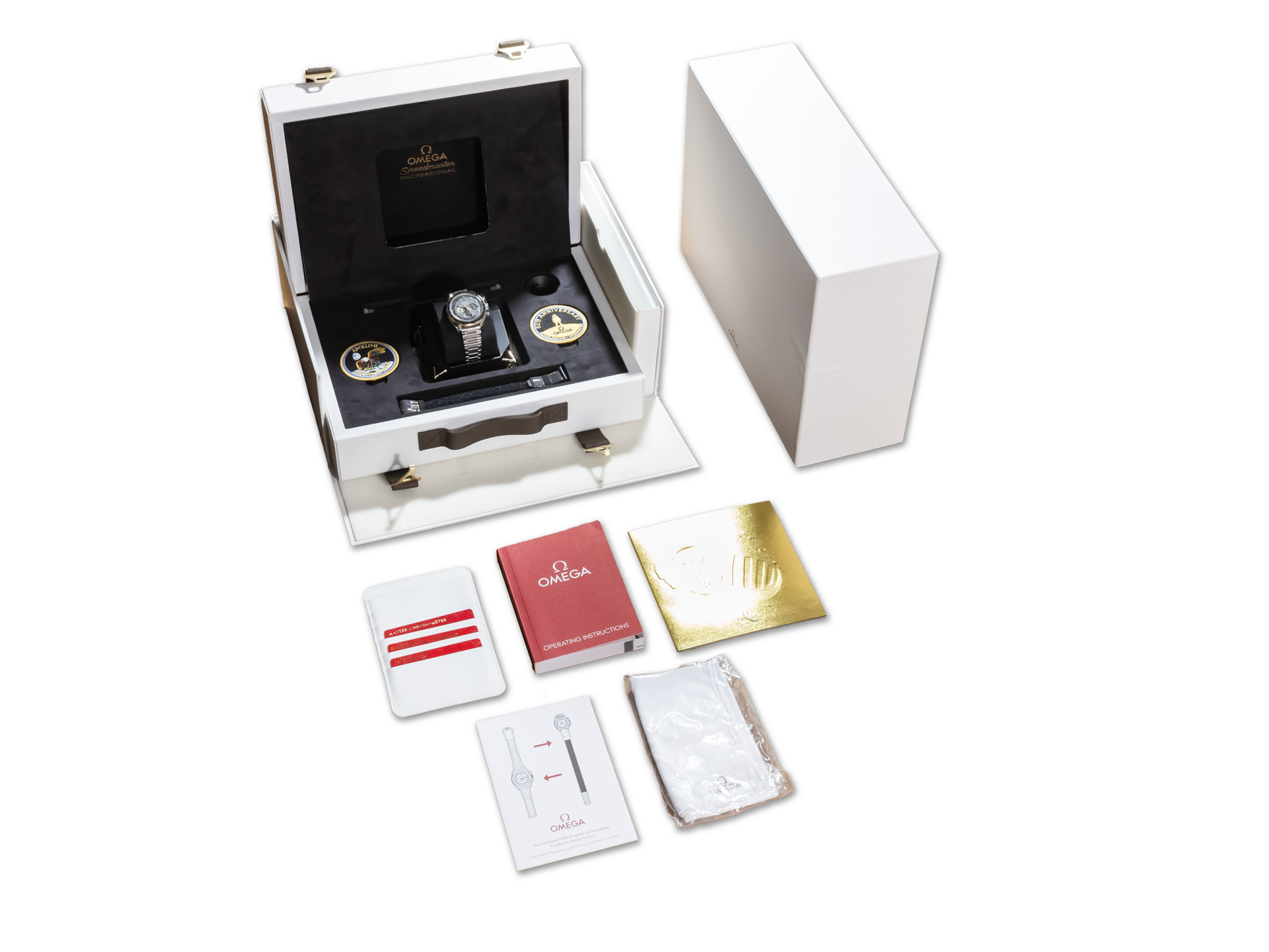 OMEGA SPEEDMASTER Apollo 11 Moon Landing 50th Anniversary LIMITED EDITION Ref 31020425001001 Stainless Steel Box Papers Stickers UNWORN Bj-2019