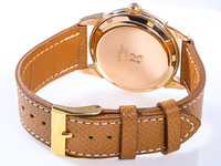 Paired with a modern leather strap, the watch retains its elegant, period-correct character while remaining highly wearable by modern standards.