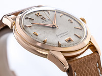Crafted in 18k rose gold, the elegantly proportioned case showcases classic mid-century design, combining refined lines with warm precious-metal tones that have aged beautifully over time. The case retains strong definition, underscoring the quality of Omega’s gold case production during this important era. The crew-back case has got a beautiful, noble engraving showing a crown with five edges and a capital B.