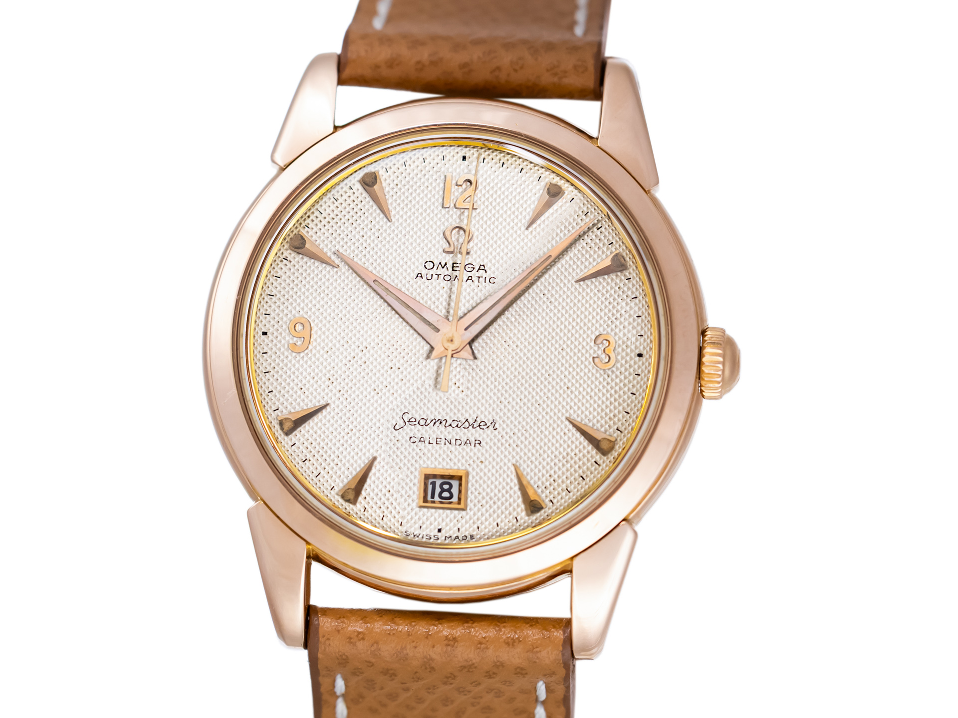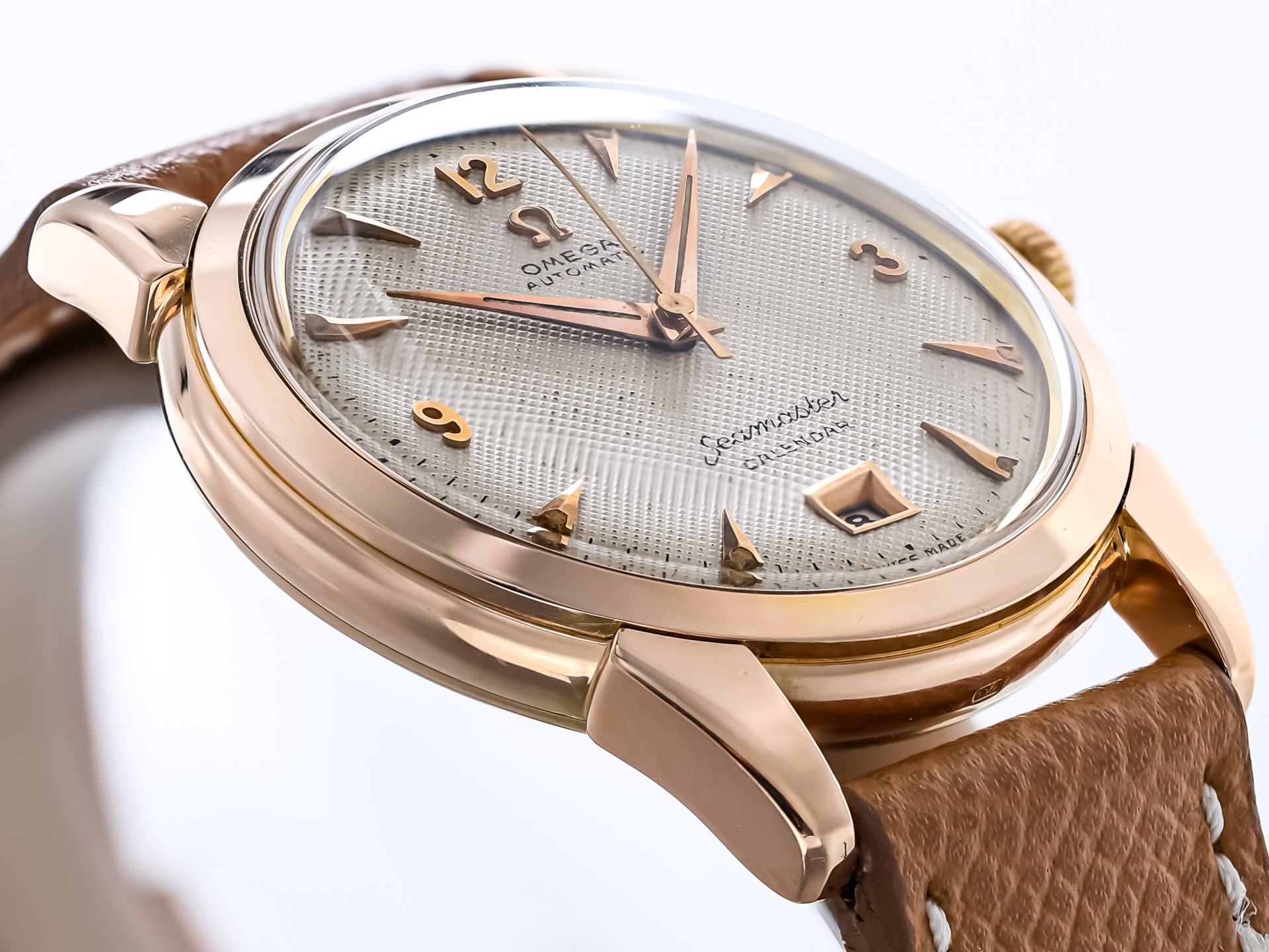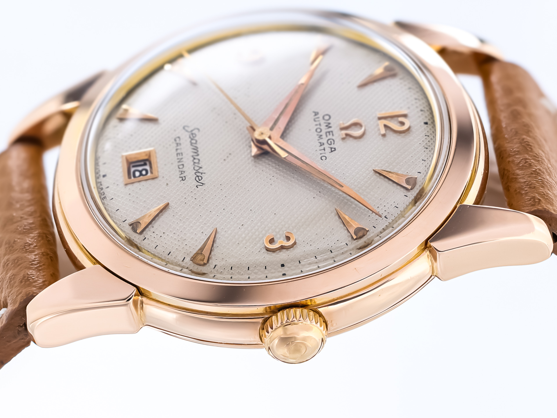 Omega Vintage Seamaster Automatic Calendar – Ref. 2627 – 18k Rose Gold – Honeycomb Radium Dial – 1950 – Rare