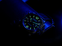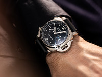 The stainless steel 44 mm Luminor case features Panerai’s iconic crown-protecting bridge and delivers a commanding wrist presence while maintaining superb durability. Complementing the case is the deep black sandwich dial — a signature Panerai design element where recessed cut-outs beneath the top layer allow luminous material to shine through, creating exceptional legibility and a three-dimensional visual depth that’s both functional and striking. The luminous hands and markers ensure high visibility in all lighting conditions.