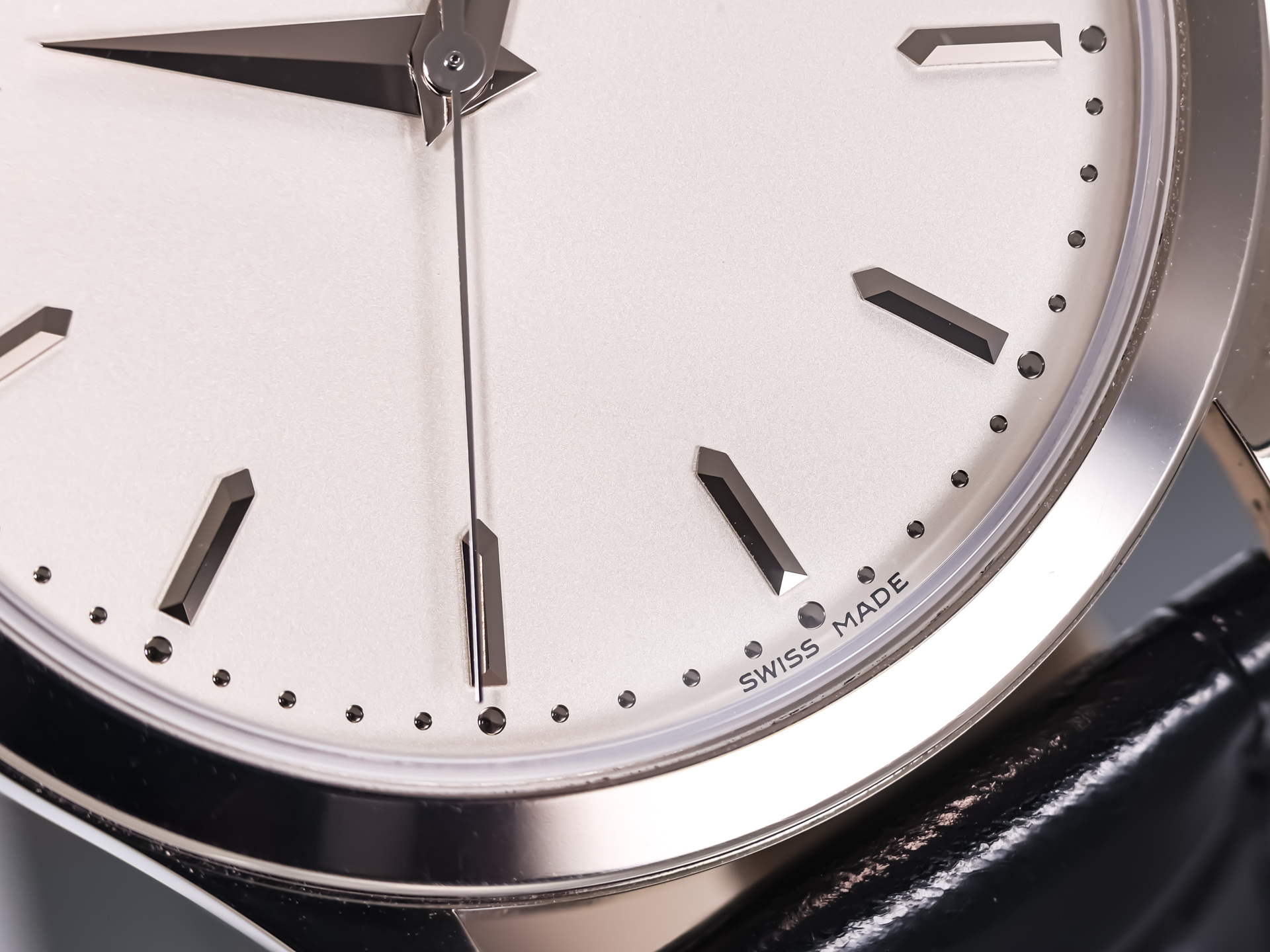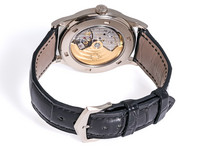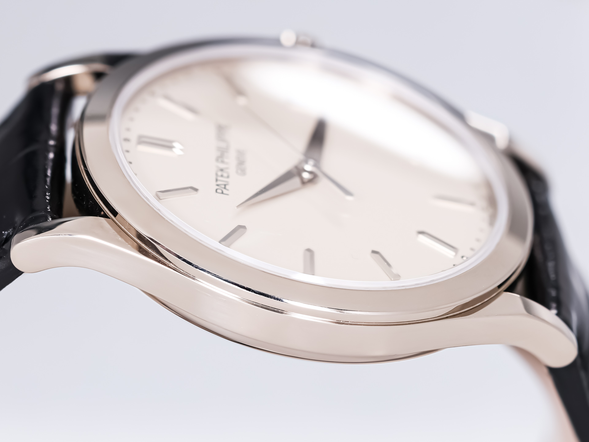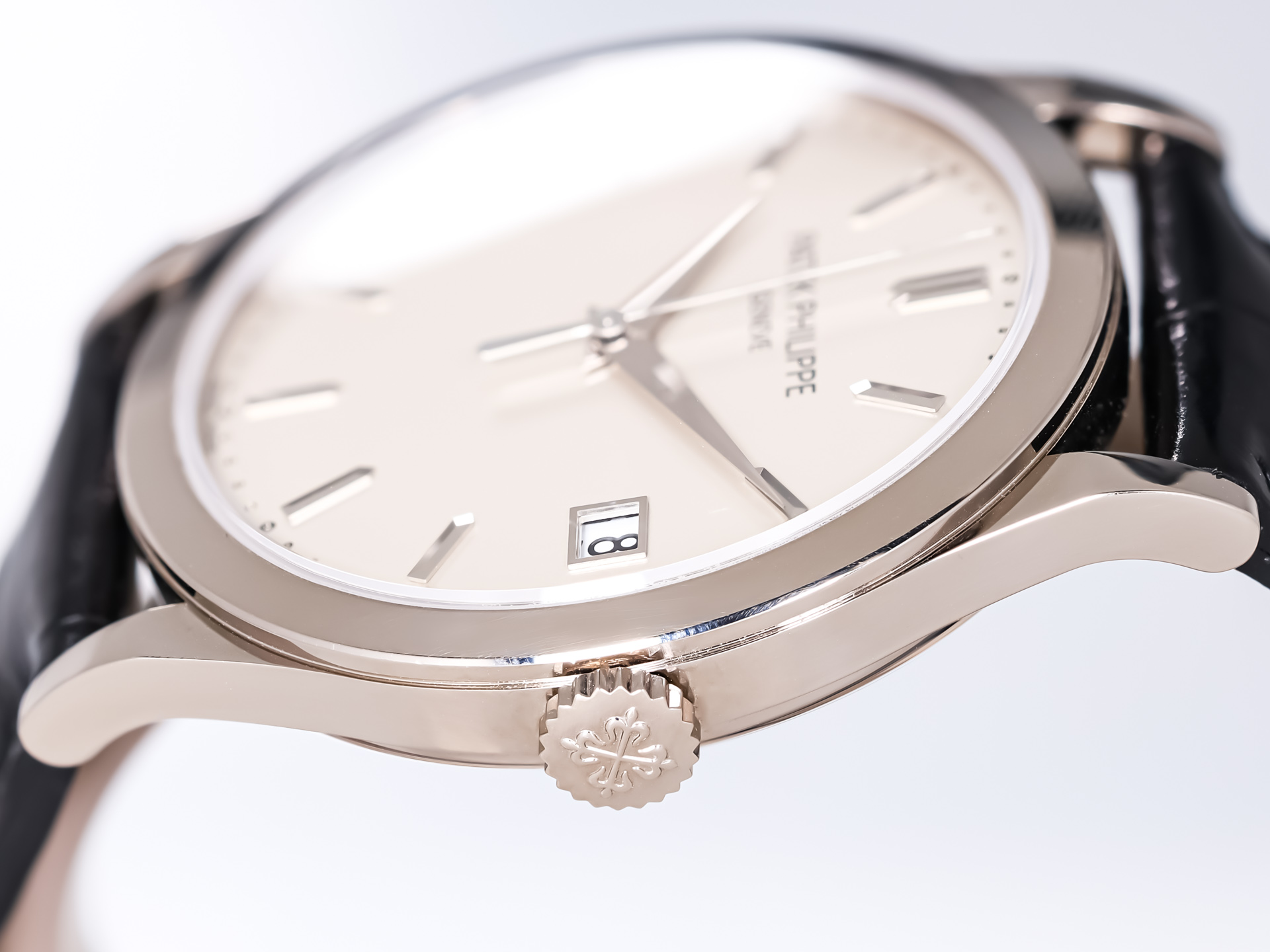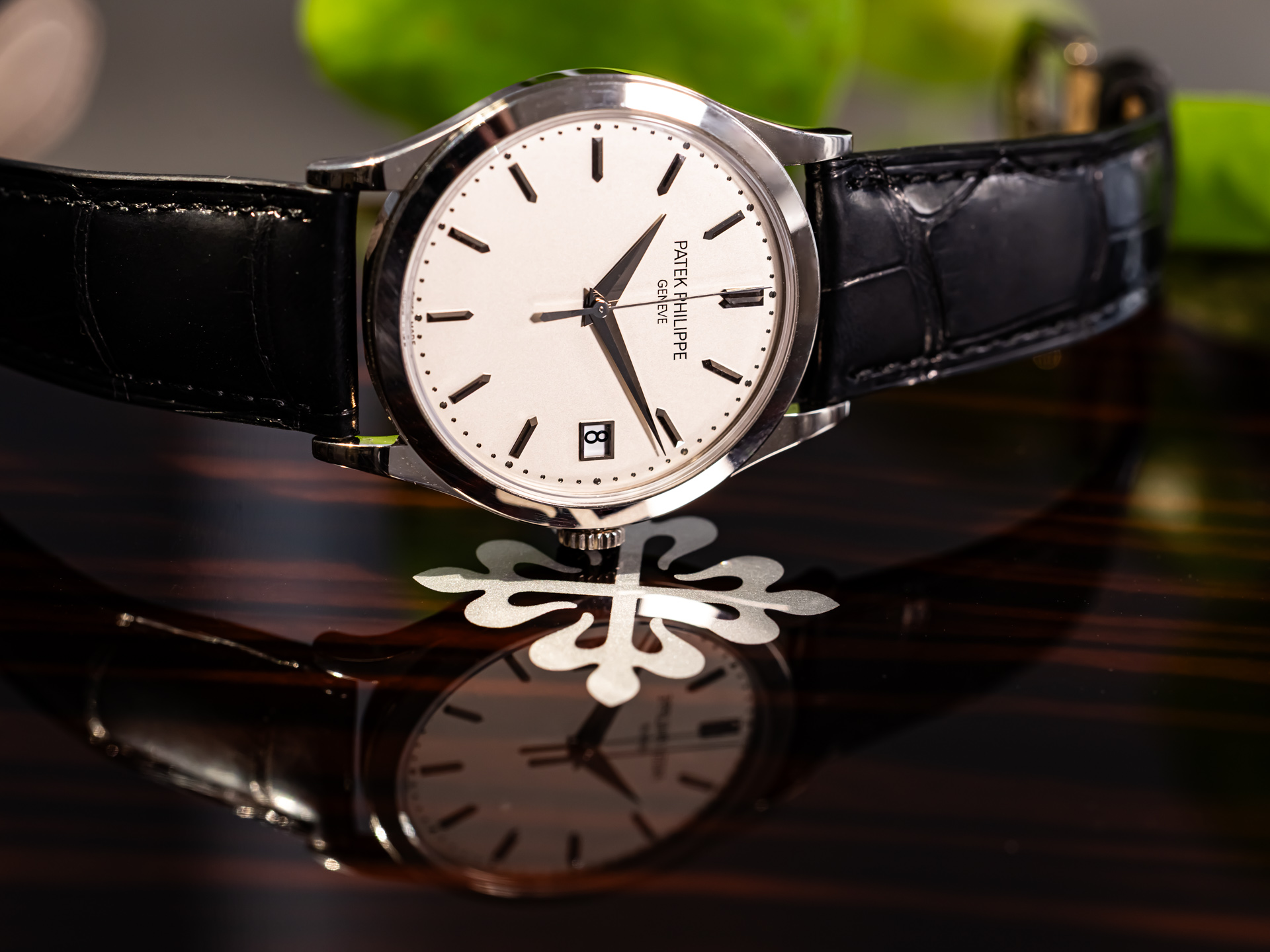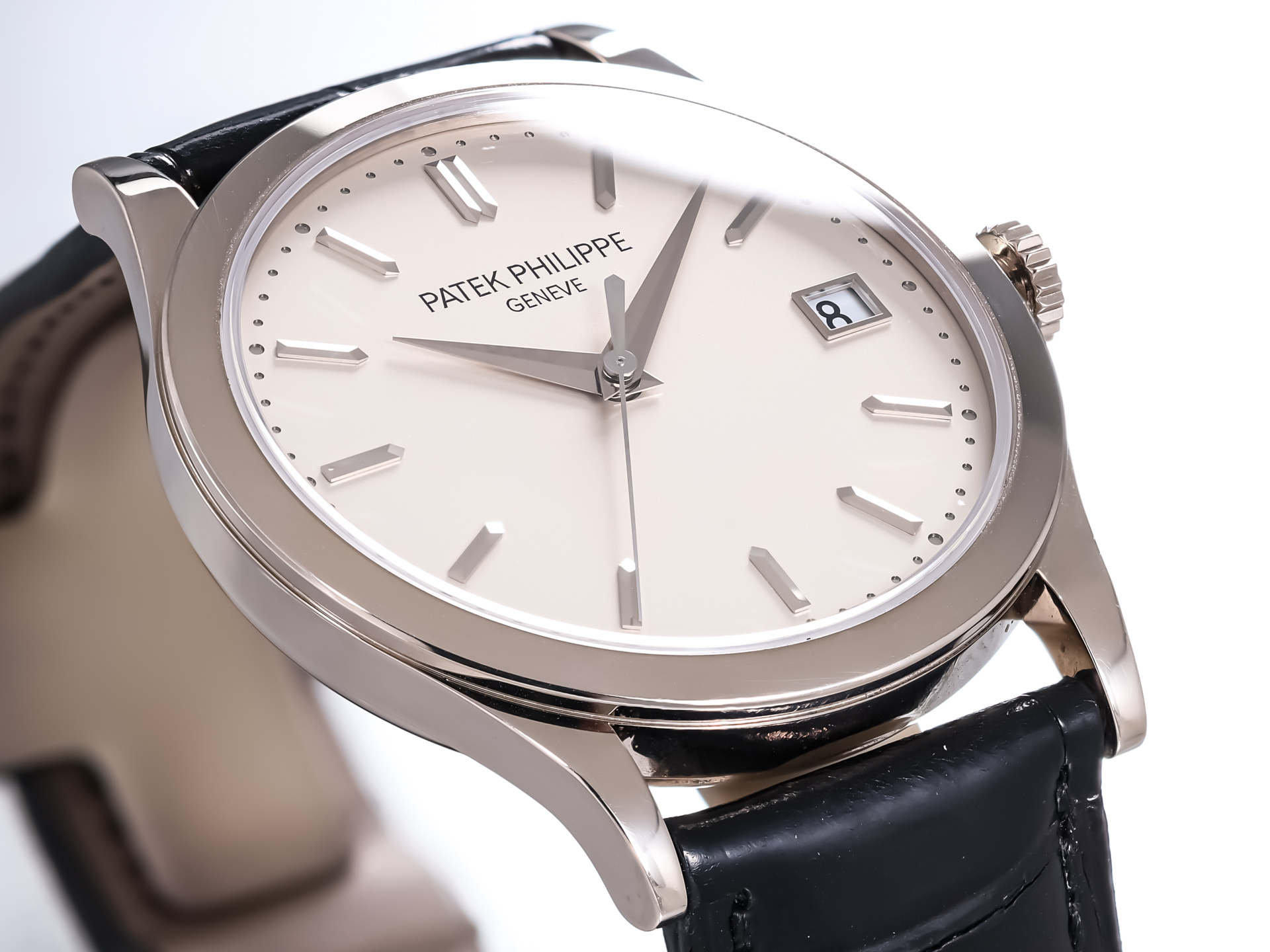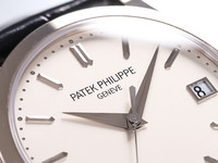 The 38mm case, rendered in polished white gold, embodies the Calatrava’s minimalist ethos while offering contemporary proportions. The stunning silver opaline dial with sector-style layout is adorned with crisp black railway minute track, blued feuille hands, and applied gold hour markers — a design inspired by Patek's archival references from the 1930s.