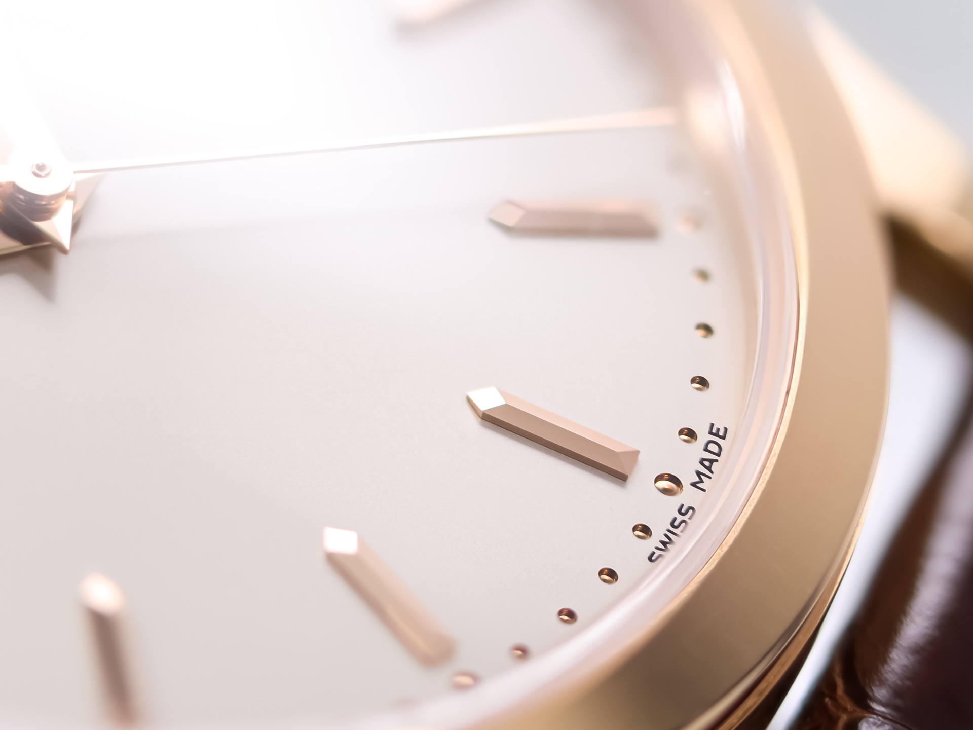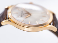 The warm rose gold case is beautifully complemented by a refined silver-toned dial, featuring applied rose gold hour markers and elegant dauphine hands. Protected by sapphire crystal on both sides, the watch offers a clear view of the exquisite finishing.