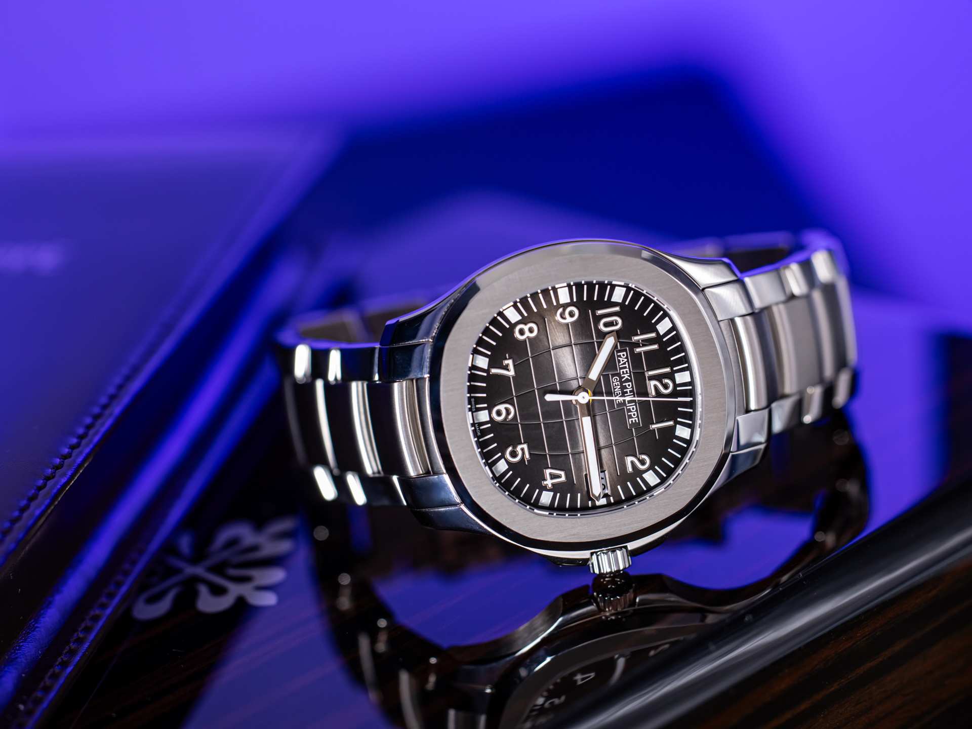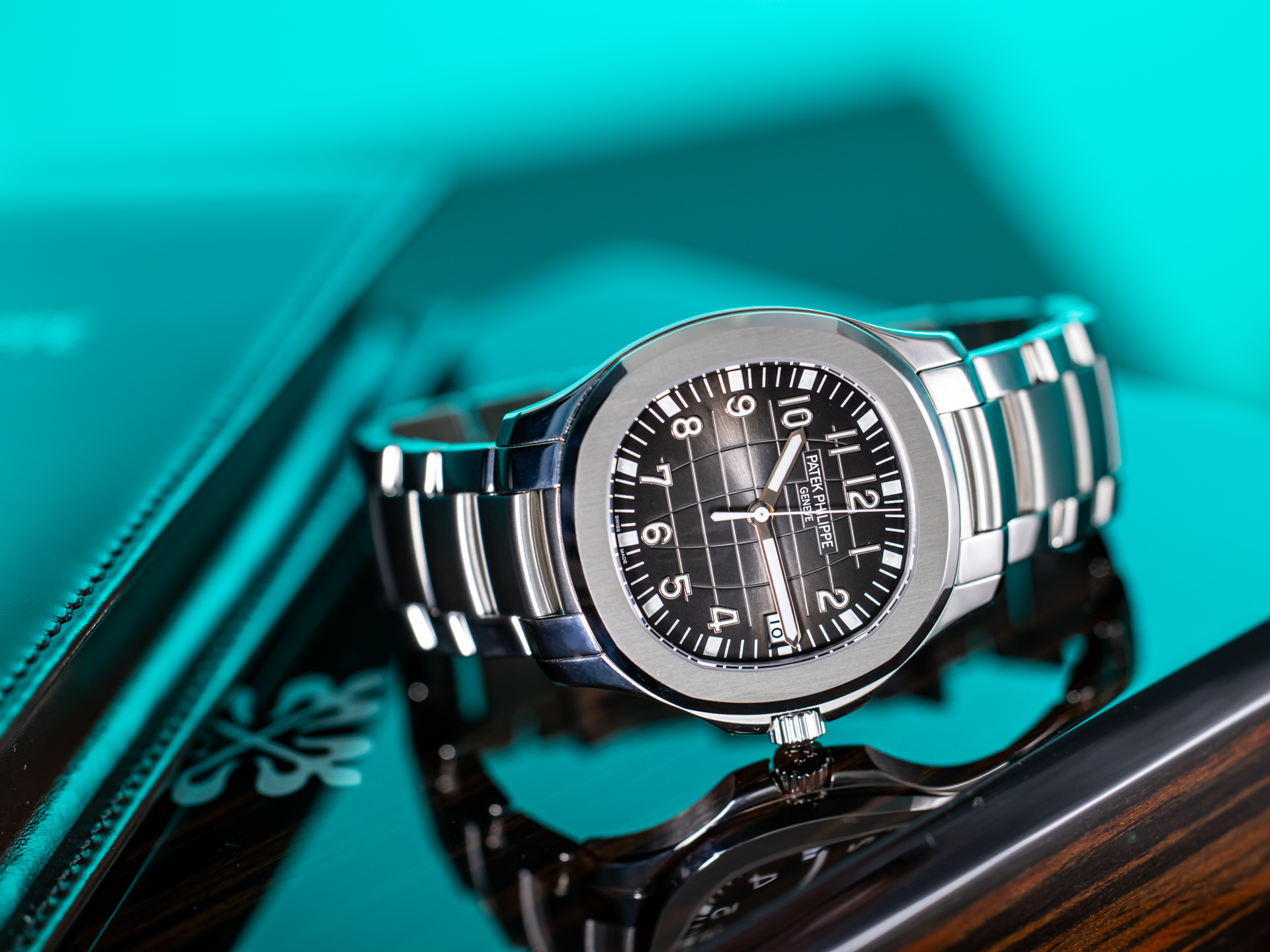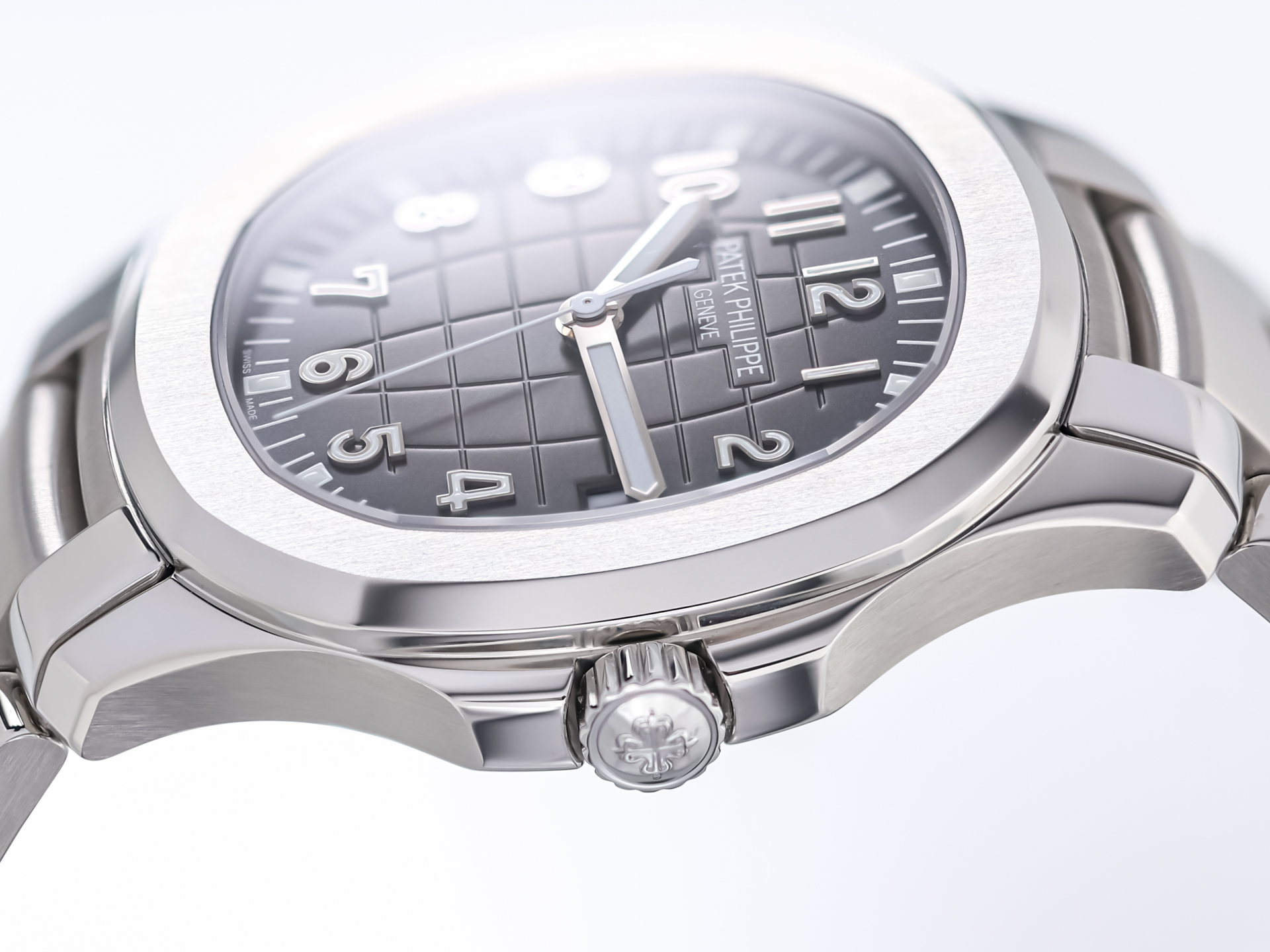 The 40.8 mm stainless steel case impresses with its balanced proportions and high wearing comfort. The characteristic embossed black dial with its relief pattern, inspired by longitude and latitude lines, gives the Aquanaut its unmistakable recognition value. Applied Arabic numerals and luminous hands ensure optimal readability, while the date display at 3 o'clock perfectly complements the functional elegance.