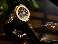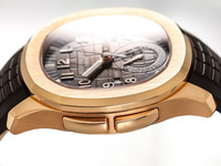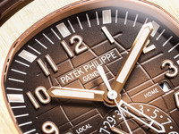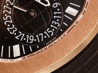 Introduced as the complication flagship of the Aquanaut collection, the Ref. 5164R merges Patek’s cutting-edge travel time functionality with the contemporary sport-luxury aesthetic that defines the Aquanaut line. The rose gold case, measuring 40.8mm, offers a dynamic presence on the wrist with a mix of satin-brushed and polished surfaces that reflect Patek Philippe’s impeccable casework.