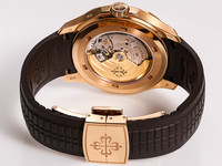 Powering the watch is the self-winding Caliber 324 S C FUS, a technically sophisticated movement featuring a 21k gold rotor, dual time zone mechanism, and a 45-hour power reserve. As expected from Patek, the movement is finished to the highest standards and visible through the sapphire exhibition caseback.