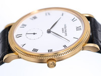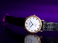 The white lacquered dial exudes classical sophistication, featuring black Roman numerals, a discreet small seconds register at 6 o’clock, and slender feuille hands in matching yellow gold. The minimalistic aesthetic, devoid of unnecessary ornamentation, places full emphasis on balance, clarity, and the enduring beauty of traditional Genevan craftsmanship.