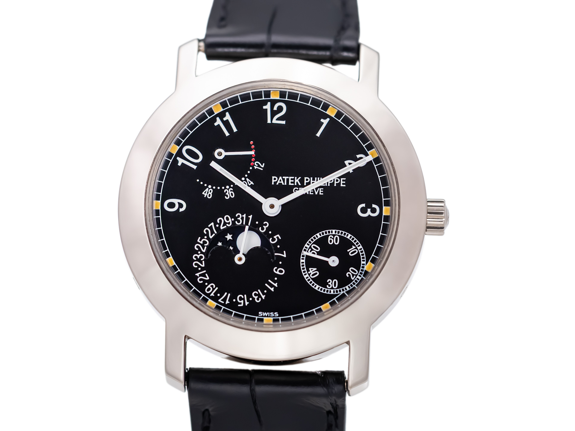 PATEK PHILIPPE CALATRAVA POWER RESERVE MOON DATE Ref 5055G-001 18k White Gold Folding Clasp Box Papers Bj-1998 PATEK Service 2024