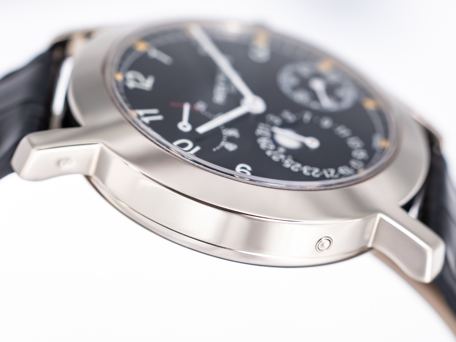 Sichtboden, Genfer Siegel, kleine Sekunde, verschraubte Drücker, Gangreserveanzeige, Originalzustand/Originalteile