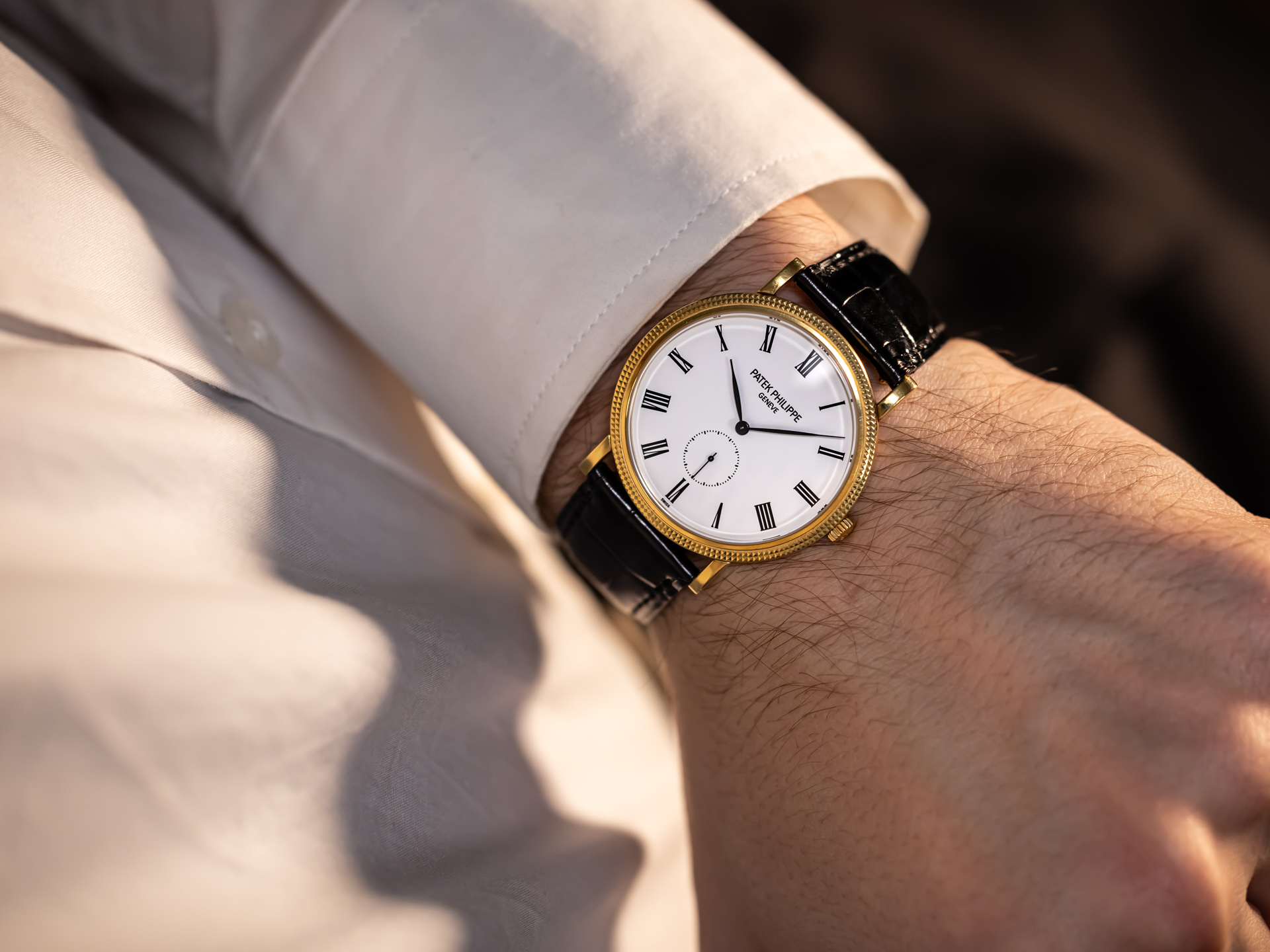 Powering the watch is the manually wound calibre 215 PS, prized for its reliability, precision, and traditional finishing. Visible through the sapphire caseback, the movement showcases Patek Philippe’s commitment to fine craftsmanship, from carefully chamfered bridges to Geneva striping and meticulous hand-adjustment. The slim architecture of the 215 PS allows the watch to maintain a classically thin silhouette, perfectly aligned with the Calatrava philosophy.