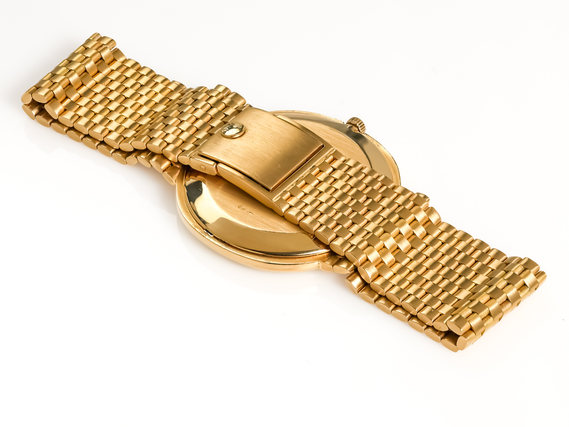 The integrated 18k yellow-gold Milanese bracelet is a work of art in its own right: supple, beautifully crafted, and perfectly matched to the case, offering exceptional comfort and a timeless aesthetic.