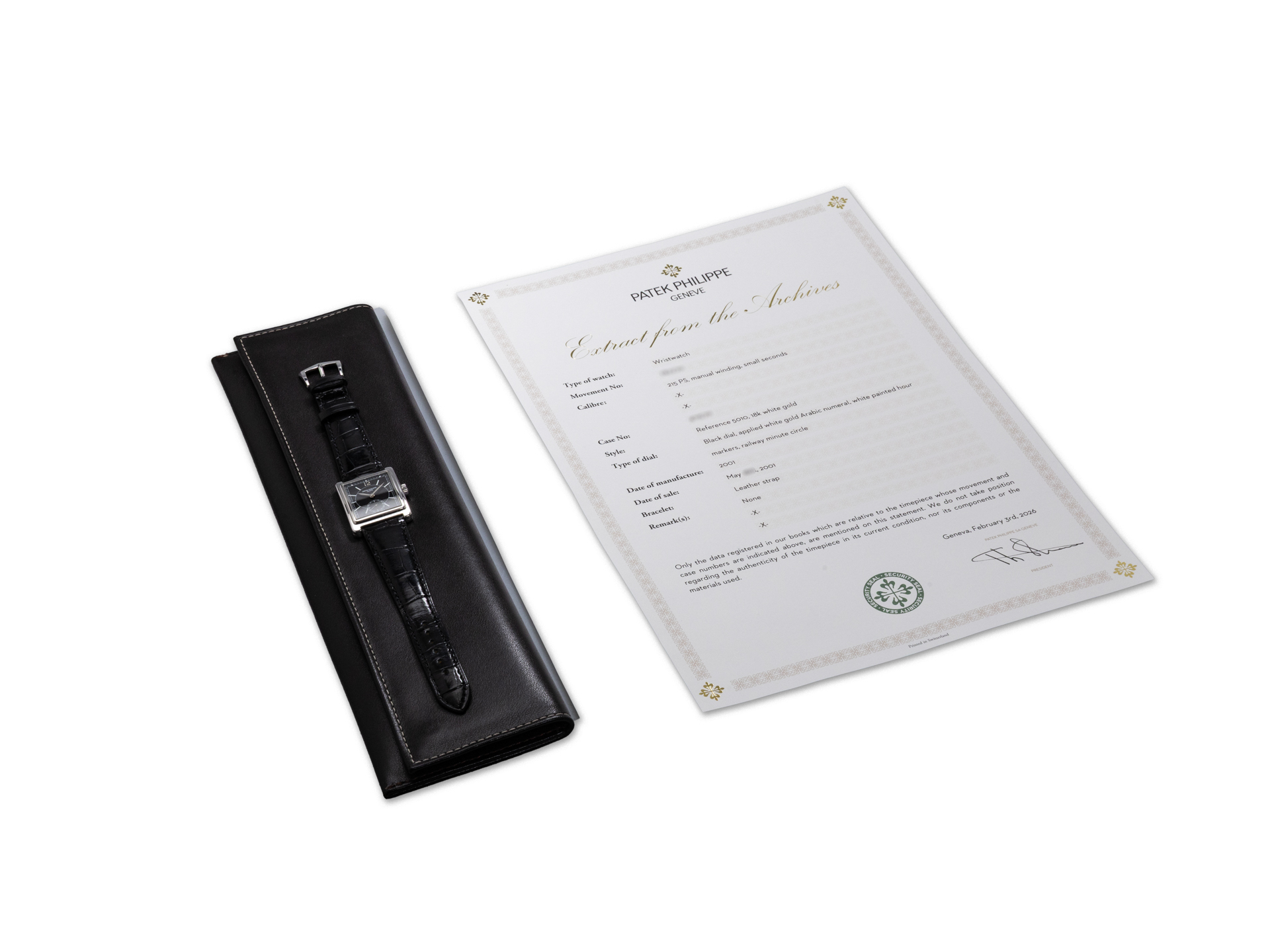 PATEK PHILIPPE GONDOLO – Ref. 5010 | White Gold | Black Dial | 2001 | Service Case & Extract from the Archives