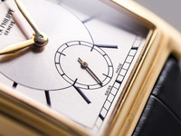 The dial is beautifully executed, showcasing a classic and highly legible layout with applied gold hour markers and elegant hands. The harmonious proportions and restrained design emphasize the watch’s formal character, making it an ideal dress watch for collectors who appreciate discreet sophistication.