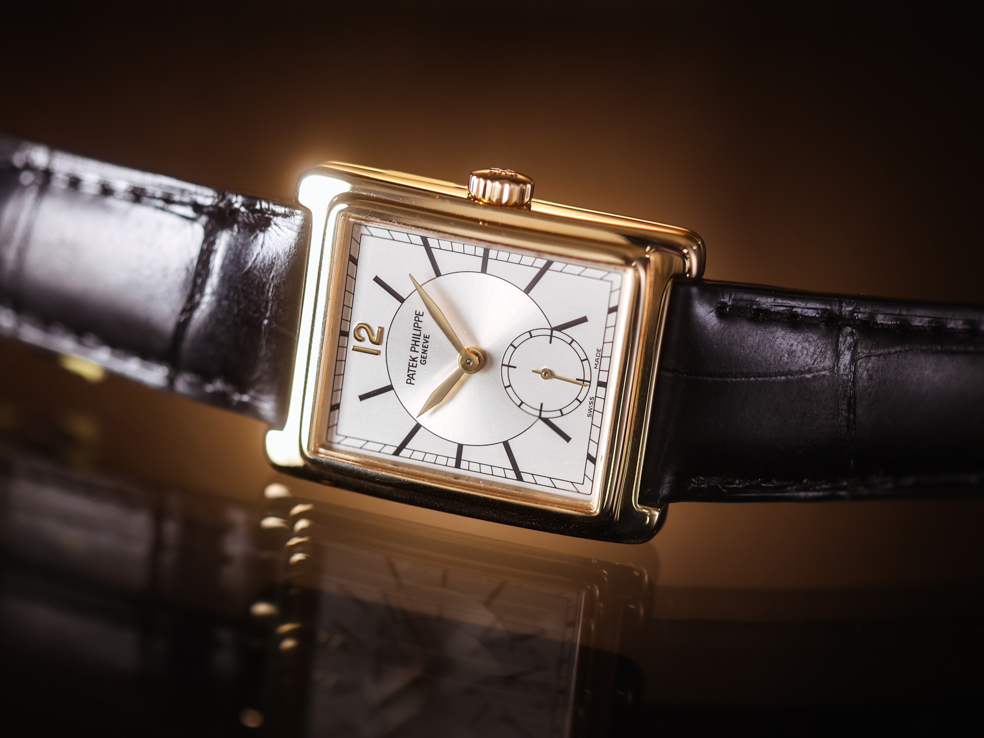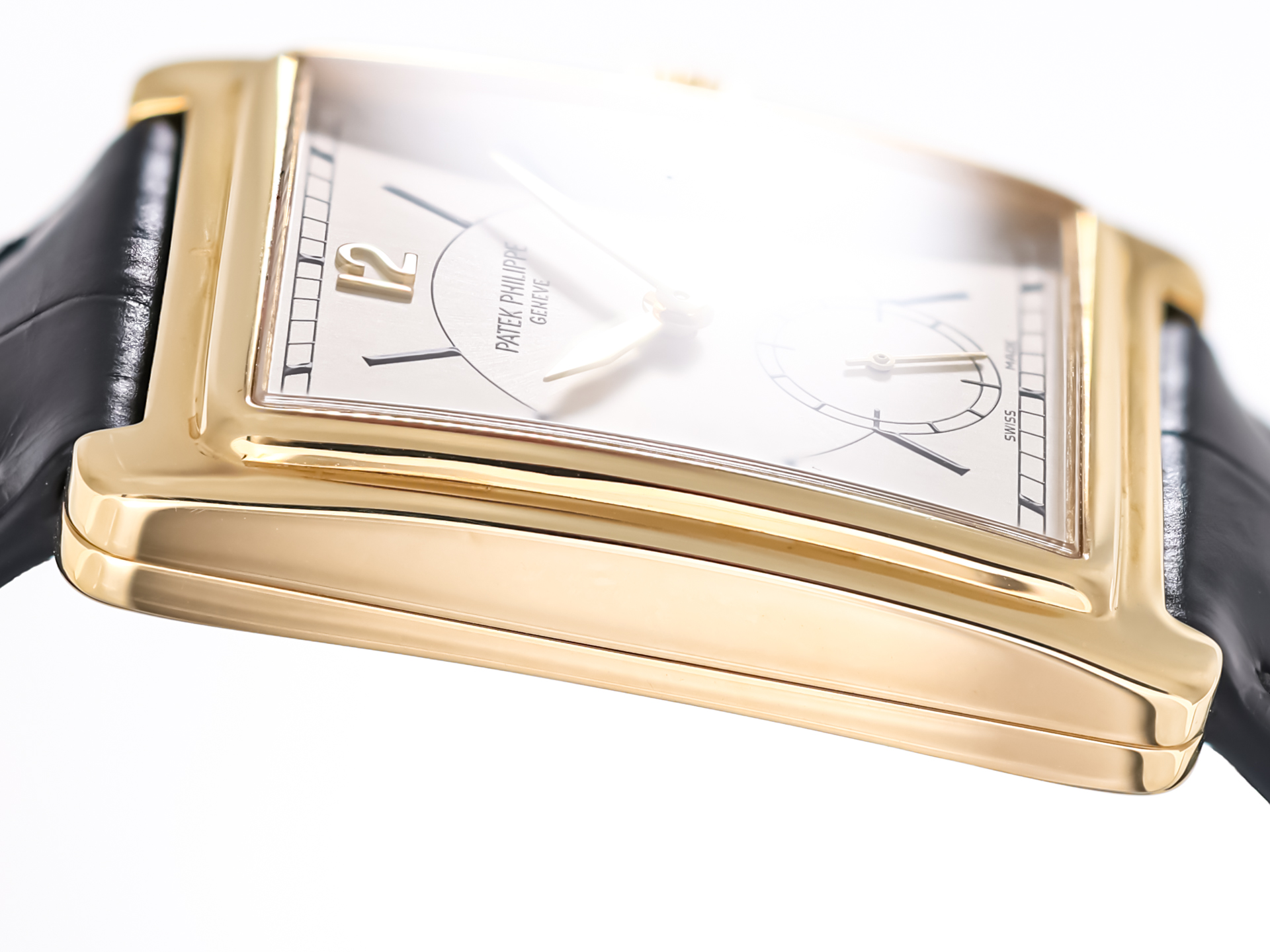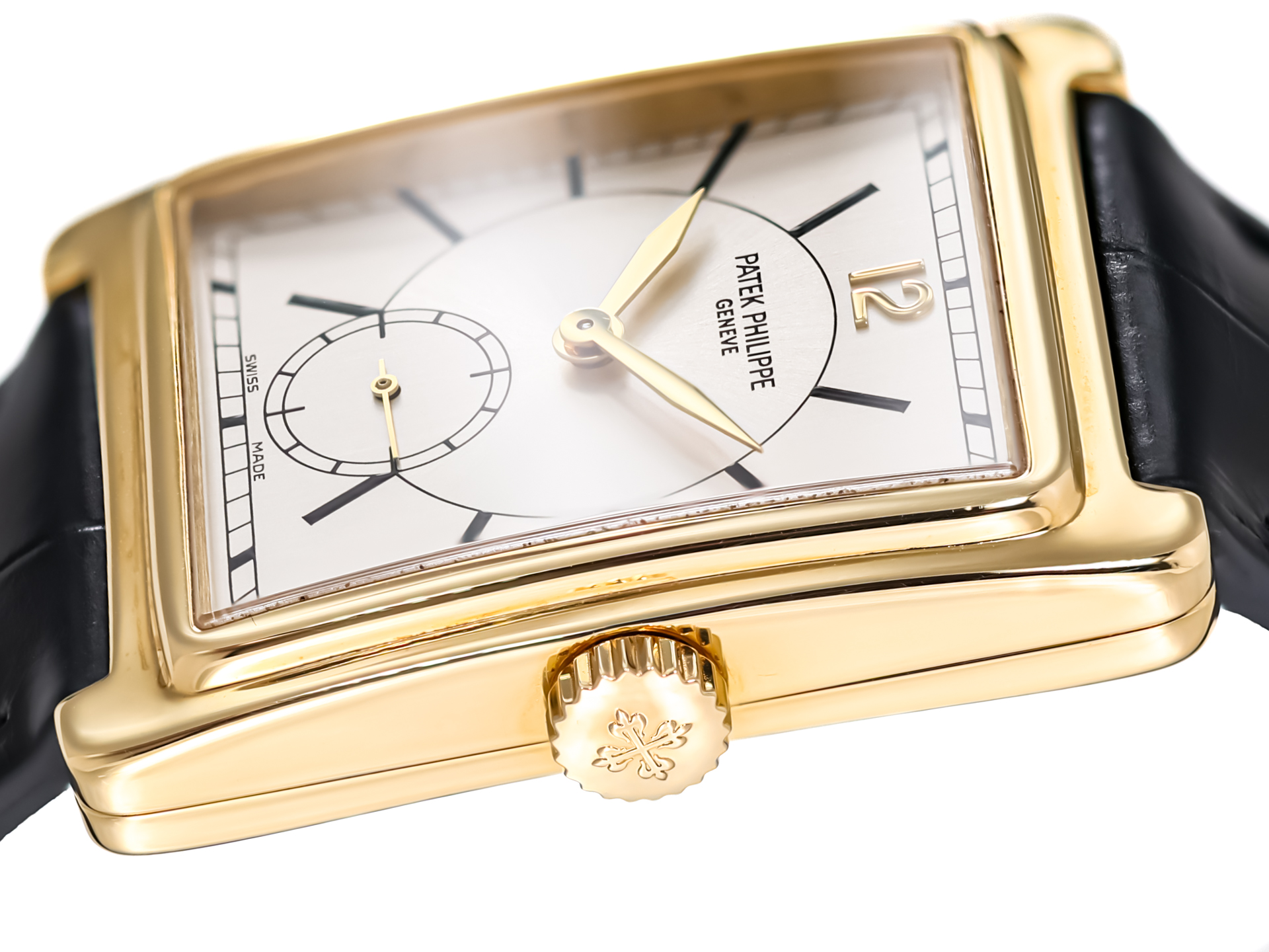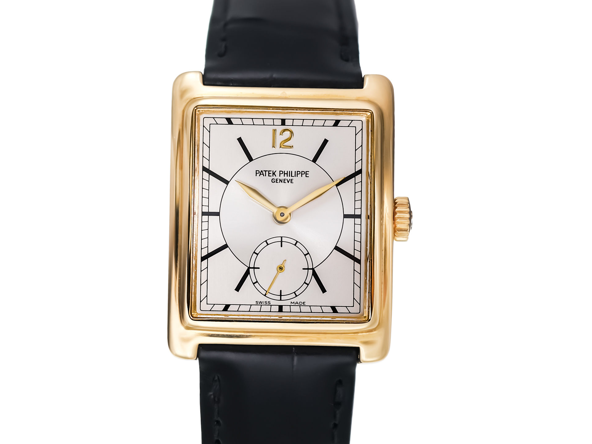 Crafted in solid 18k yellow gold, the rectangular case of this reference offers a sophisticated alternative to traditional round watches. Its clean lines, gently curved profile, and perfectly balanced proportions create a refined and elegant presence on the wrist, reflecting the understated luxury for which Patek Philippe is renowned.