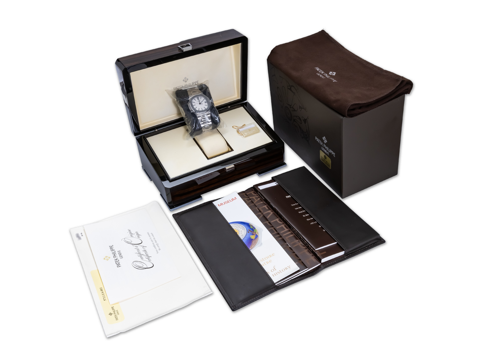 Offered in unworn and factory-sealed condition, this piece is preserved exactly as delivered by Patek Philippe — still housed in its sealed factory delivery box, untouched and complete.