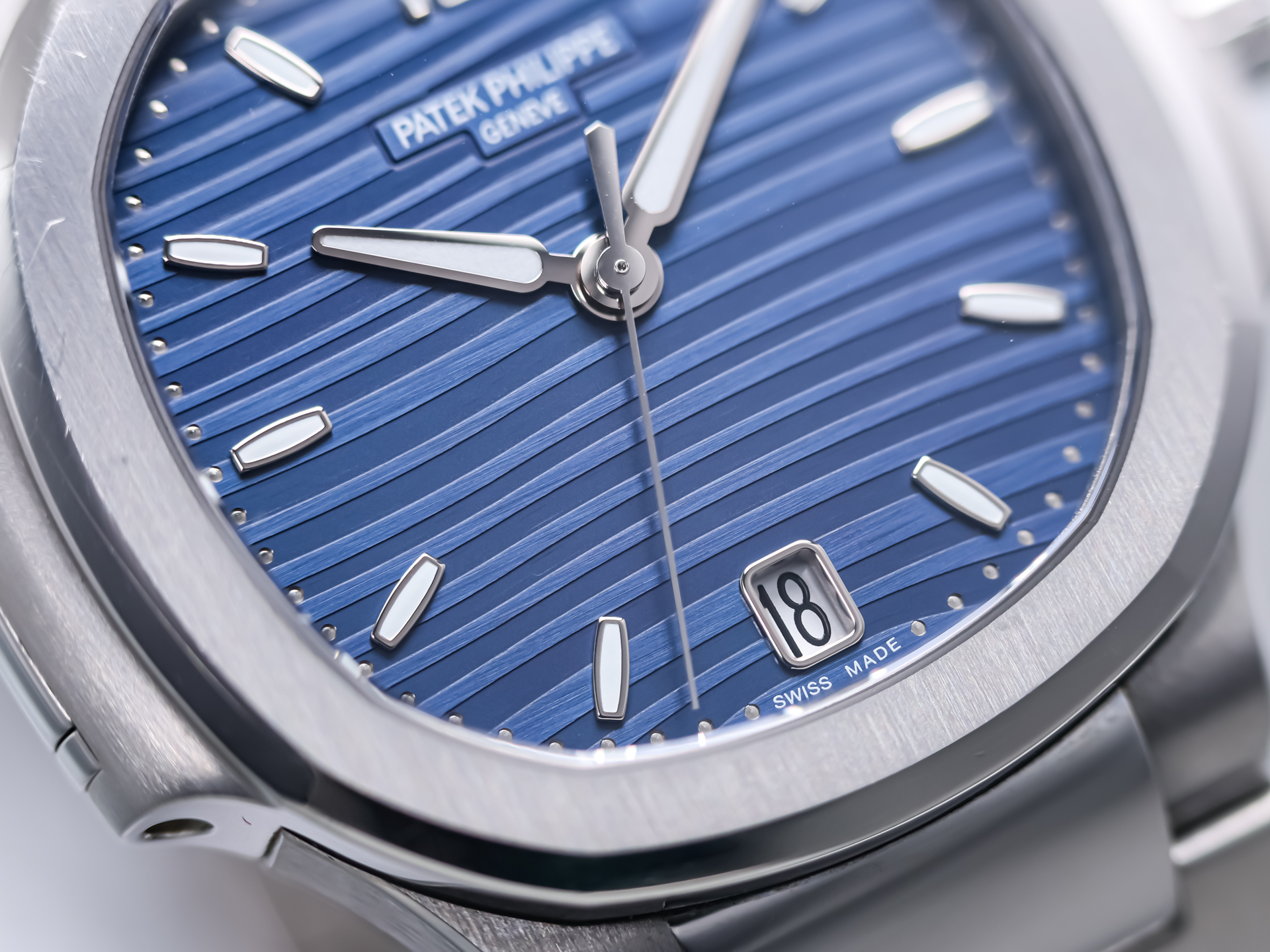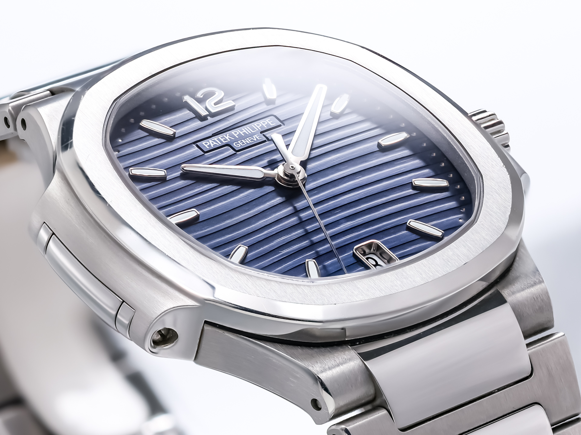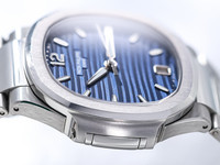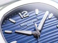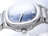 The stunning blue dial features the characteristic horizontal embossed pattern that defines the Nautilus line. Applied luminous hour markers and elegant baton hands ensure outstanding legibility while maintaining the refined and balanced aesthetic that has made the Nautilus one of the most recognizable luxury sports watches ever produced.