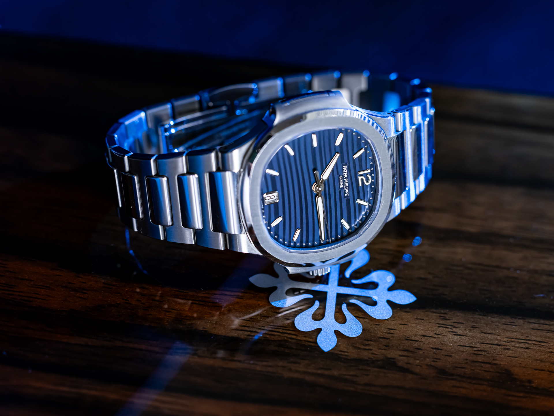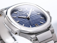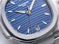 - Blue embossed Nautilus dial with date display