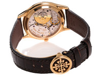 Crafted in 18k rose gold, the elegant 36 mm case embodies the perfect proportions for which the Ref. 3940 is renowned. Ultra-thin, refined, and timeless, the case reflects Patek Philippe’s mastery of discreet luxury and classical watchmaking. This example further benefits from a second solid case back, offering versatility between display and traditional aesthetics.