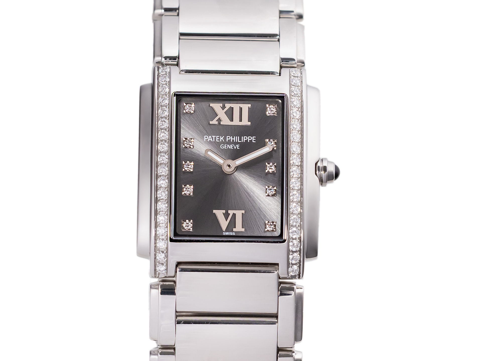 PATEK PHILIPPE TWENTY4 Ref. 4910-10A-010 Stainless Steel One Rows Of Diamond Setting Box Papers Bj-2017