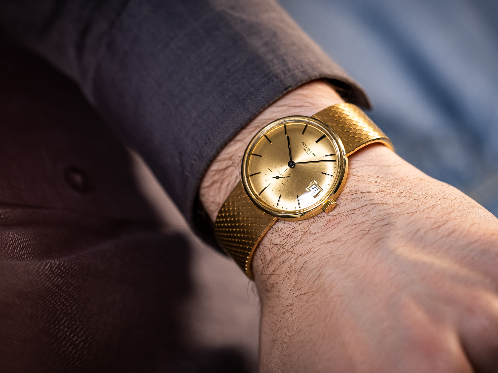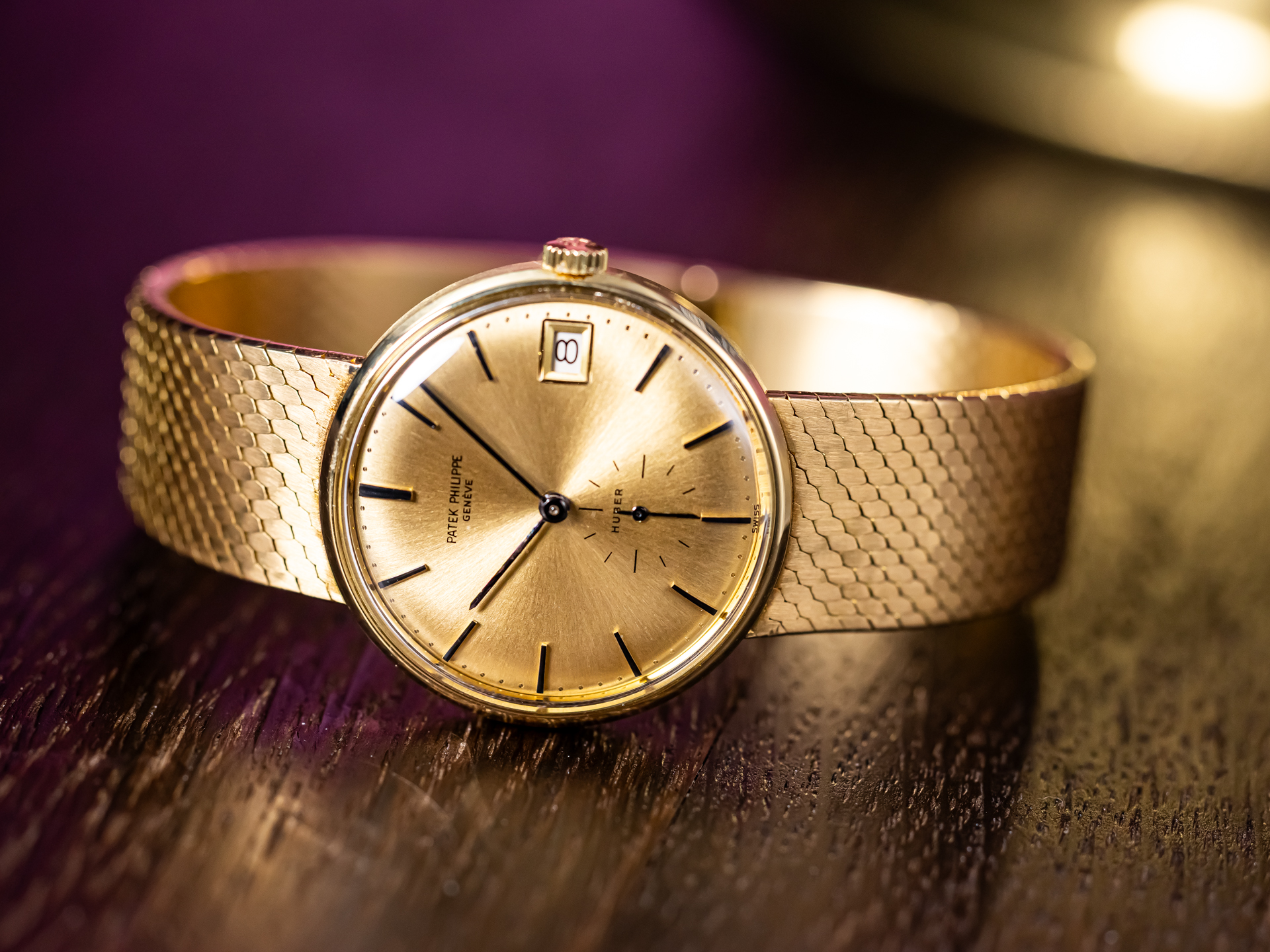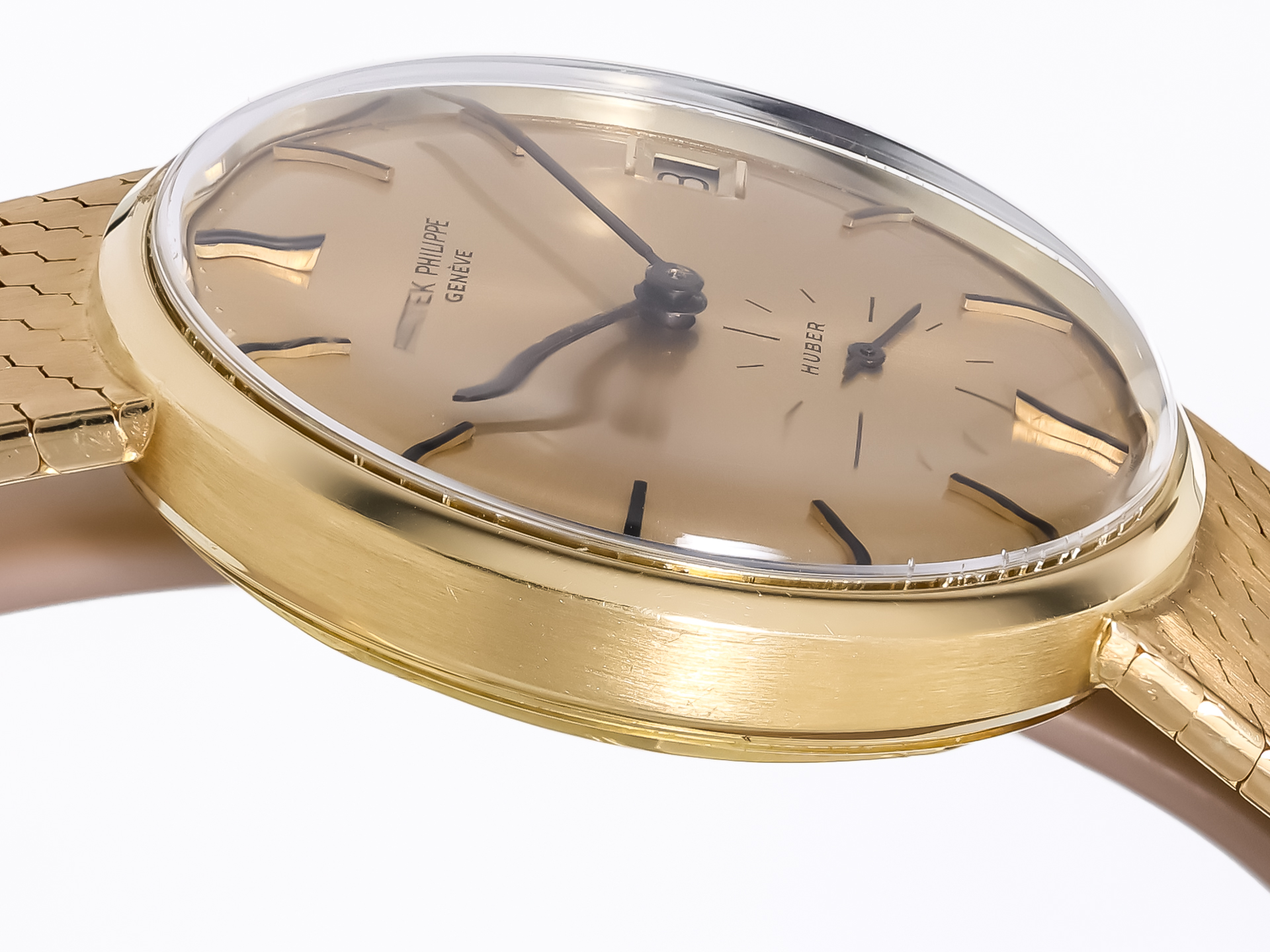 PATEK PHILIPPE Vintage Calatrava Monodate Automatic Ref. 3514-4 – 18k Yellow Gold – (Uhren) Huber Dial – Milanese Bracelet – Circa 1968