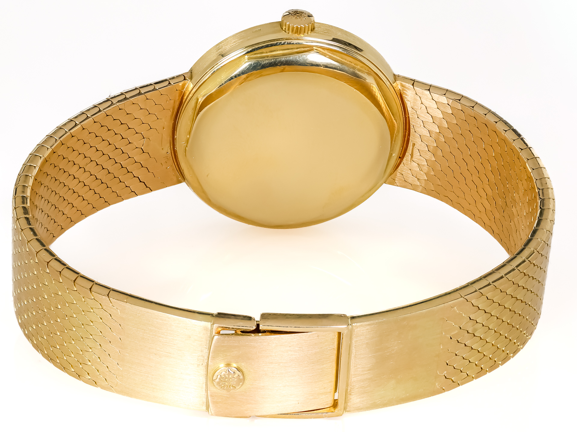 PATEK PHILIPPE Vintage CALATRAVA MONODATE Automatic Ref 3514-4 18k Yellow Gold Milanese Bracelet HUBER Dial Extract Bj-1968 Excellent Rare