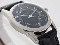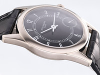 Produced around 1999, the Ref. 5000G features a beautifully proportioned 33.5 mm case, faithful to traditional Calatrava dimensions and prized by collectors for its elegance and comfort on the wrist. The clean silver dial is accented by applied white gold hour markers and slender dauphine hands, resulting in a minimalist and perfectly balanced design.