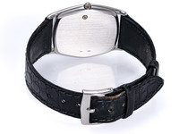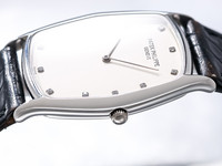 The slim, rectangular case in 950 platinum embodies the essence of the Gondolo line, inspired by the Art Deco period and defined by its clean geometry and balanced proportions. Its refined presence on the wrist reflects Patek Philippe’s mastery in creating elegant dress watches that transcend passing trends.
