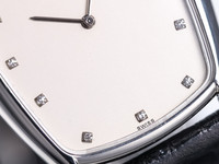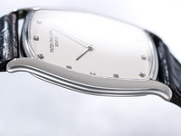 The dial is enhanced by a delicate diamond setting, adding a subtle yet unmistakable touch of luxury. The harmonious layout, combined with fine detailing, ensures both visual refinement and legibility, while preserving the timeless aesthetic for which Patek Philippe is renowned.