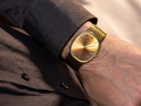 The generously sized “Jumbo” Ellipse case, executed entirely in warm 18k yellow gold, displays beautifully preserved surfaces with elegant curves and a slim, sophisticated profile. Complementing the case is the original and highly sought-after 18k yellow gold Milanese bracelet, which integrates seamlessly and enhances the watch’s luxurious yet fluid presence on the wrist.