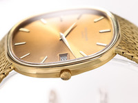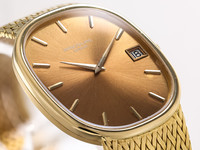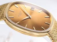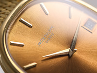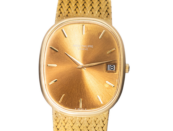Patek Philippe Vintage Jumbo Ellipse Date Automatic – Ref. 3605 – 18k Yellow Gold – Honey Gold Sigma Dial – 18k Milanese Bracelet – Box – 1973 — Total Length 21cm