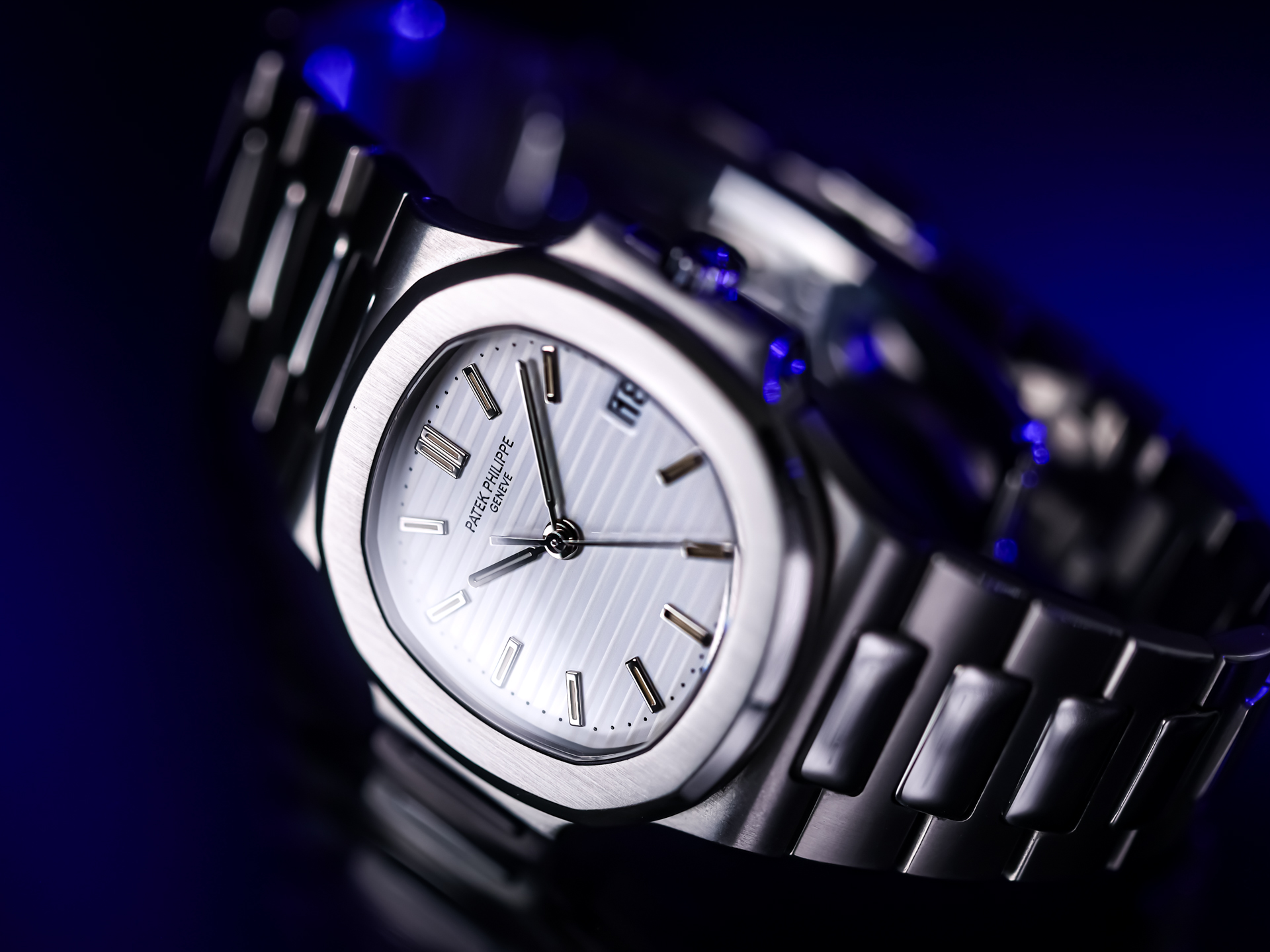 Crafted in stainless steel, the iconic 37.5 mm case (often referred to as the mid-size Nautilus) embodies the unmistakable design language conceived by Gérald Genta. With its signature porthole-inspired construction, integrated bracelet, and distinctive “ears” on the case sides, the Ref. 3800 remains one of the most wearable and versatile interpretations of the Nautilus lineage.
