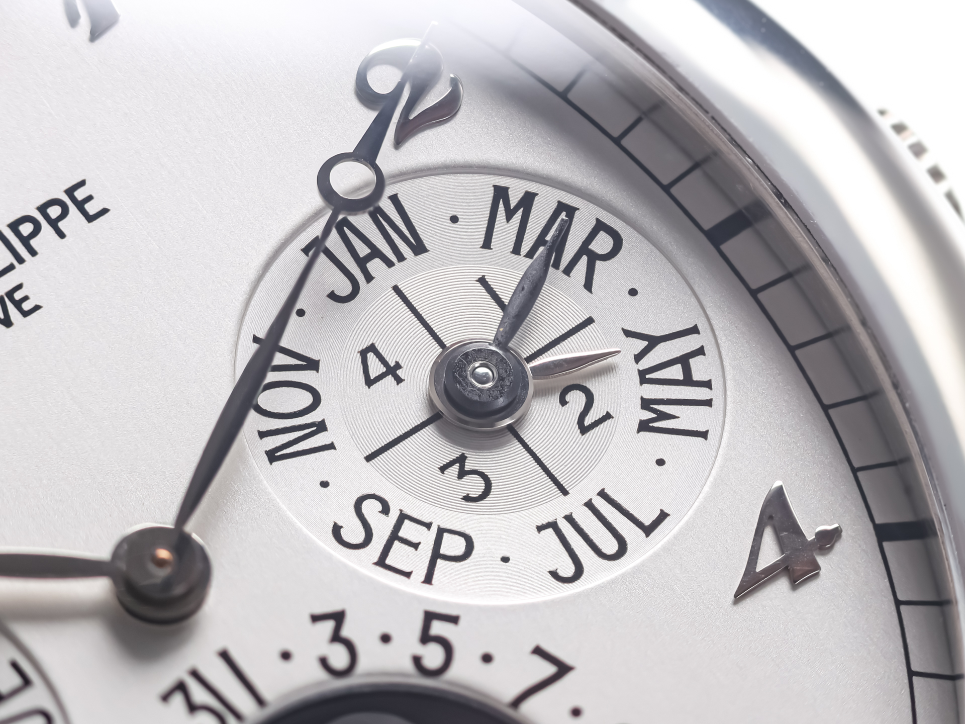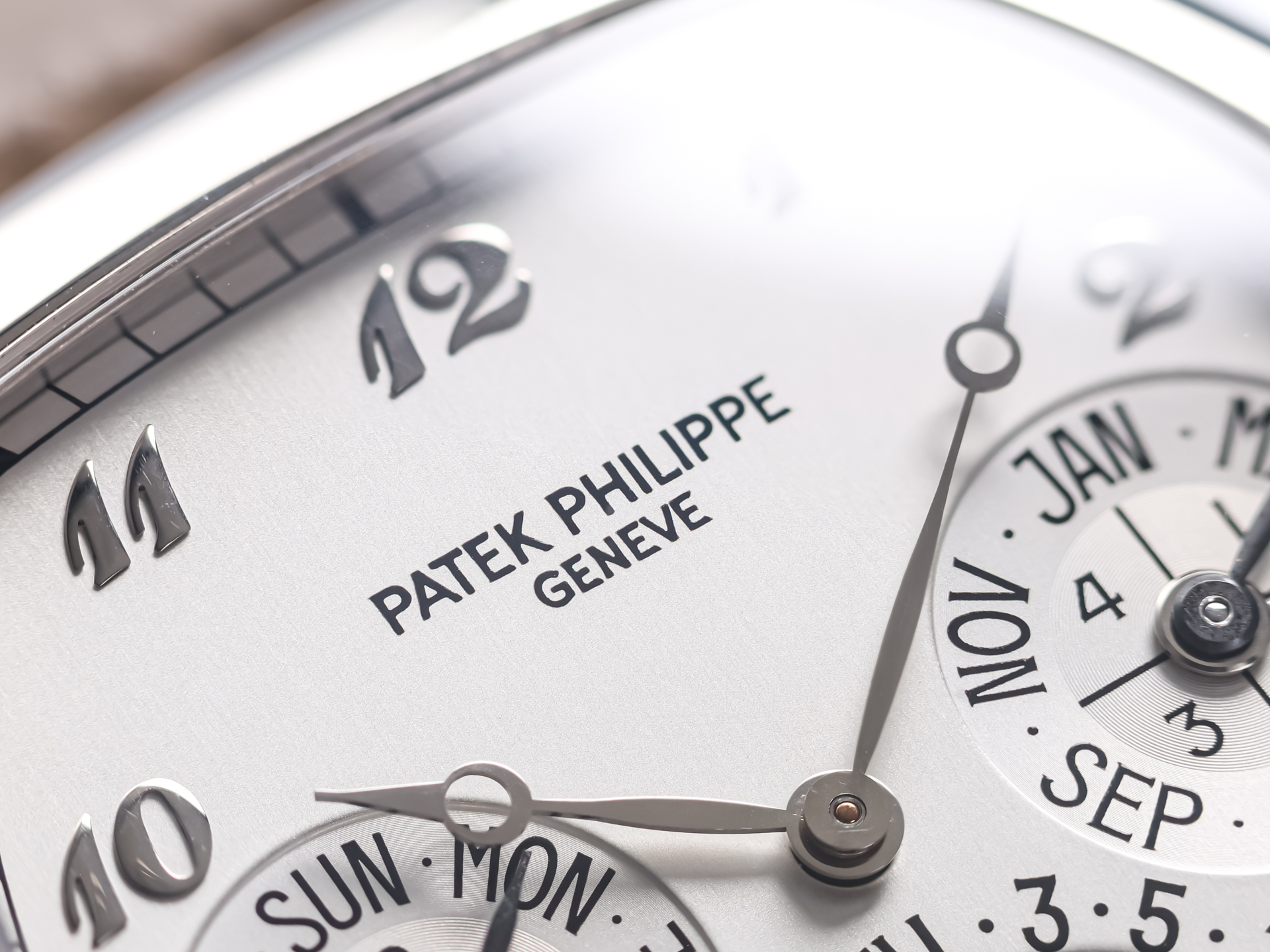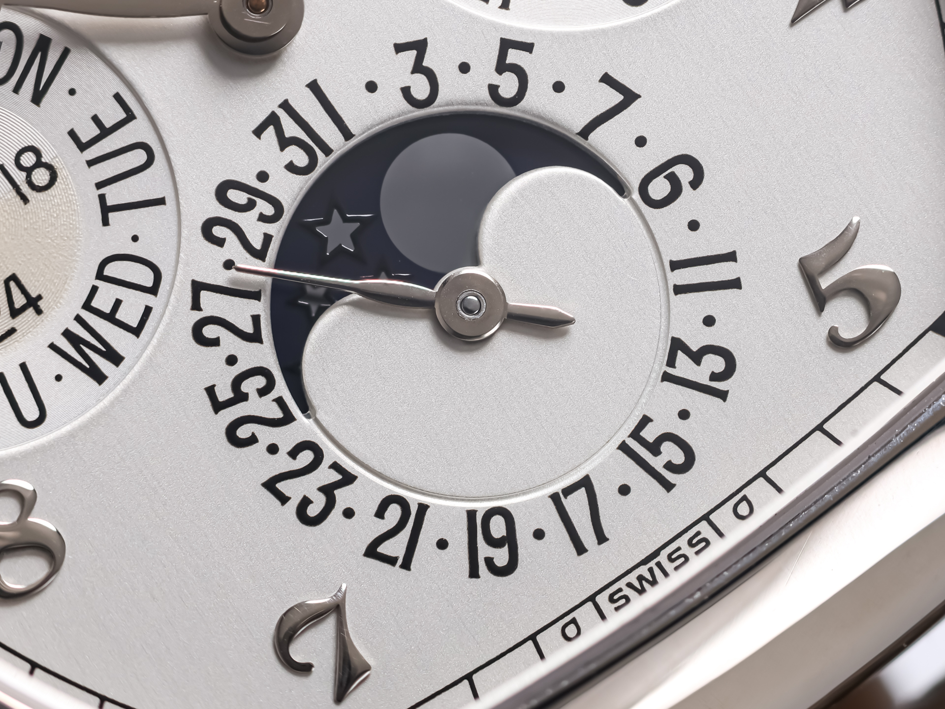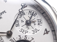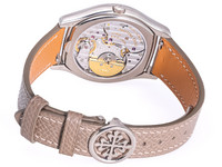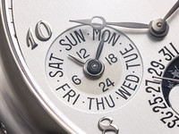 The dial is a harmonious display of horological complexity, featuring day, date, month, leap year indication, and a beautifully executed moon-phase display. Despite the wealth of information, the layout remains perfectly balanced and legible—an achievement that highlights Patek Philippe’s unparalleled design expertise.