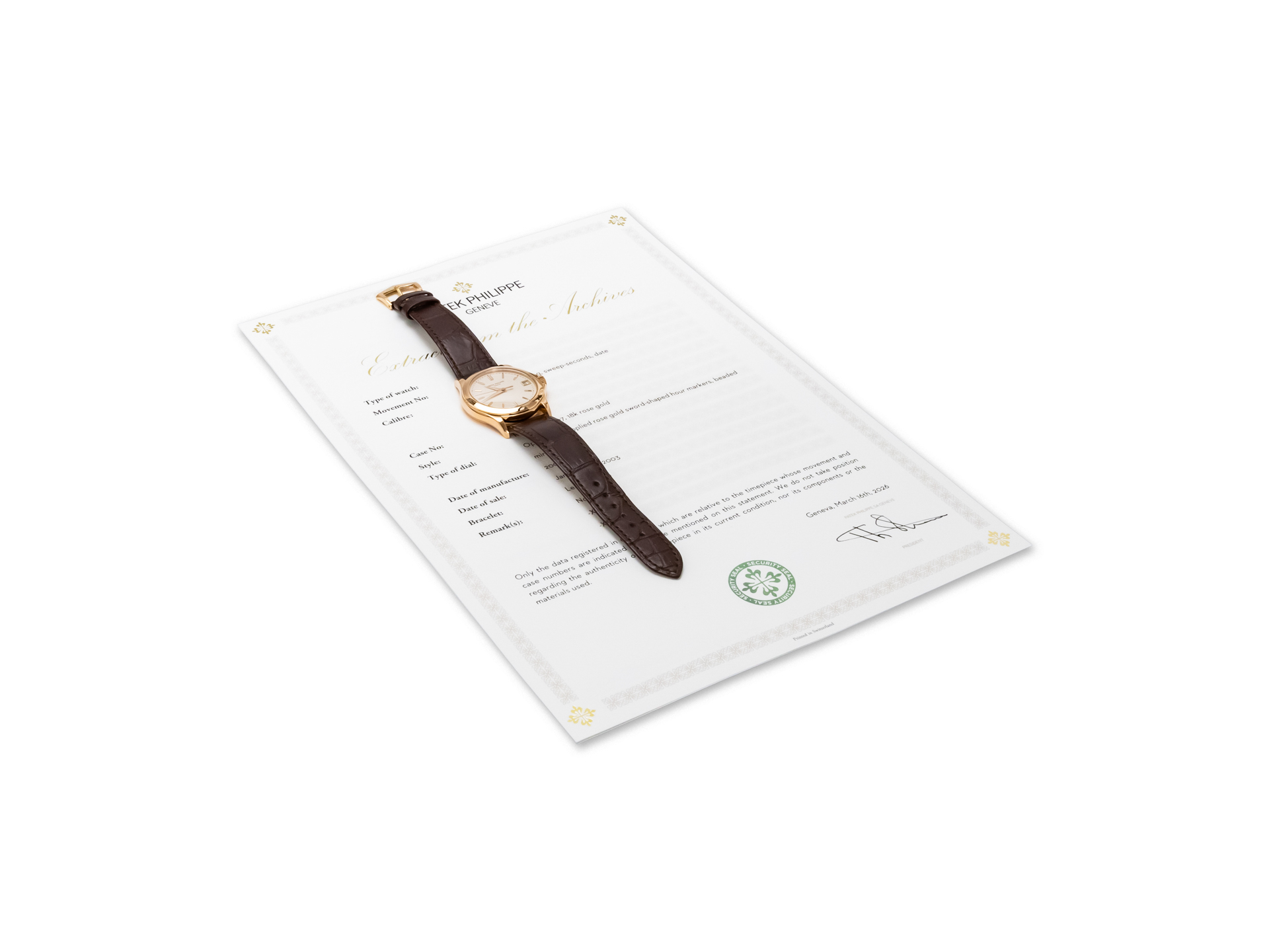 This example is further accompanied by an official Patek Philippe Extract from the Archives, confirming its year of manufacture as 2002 — an important document that enhances both collectability and provenance.