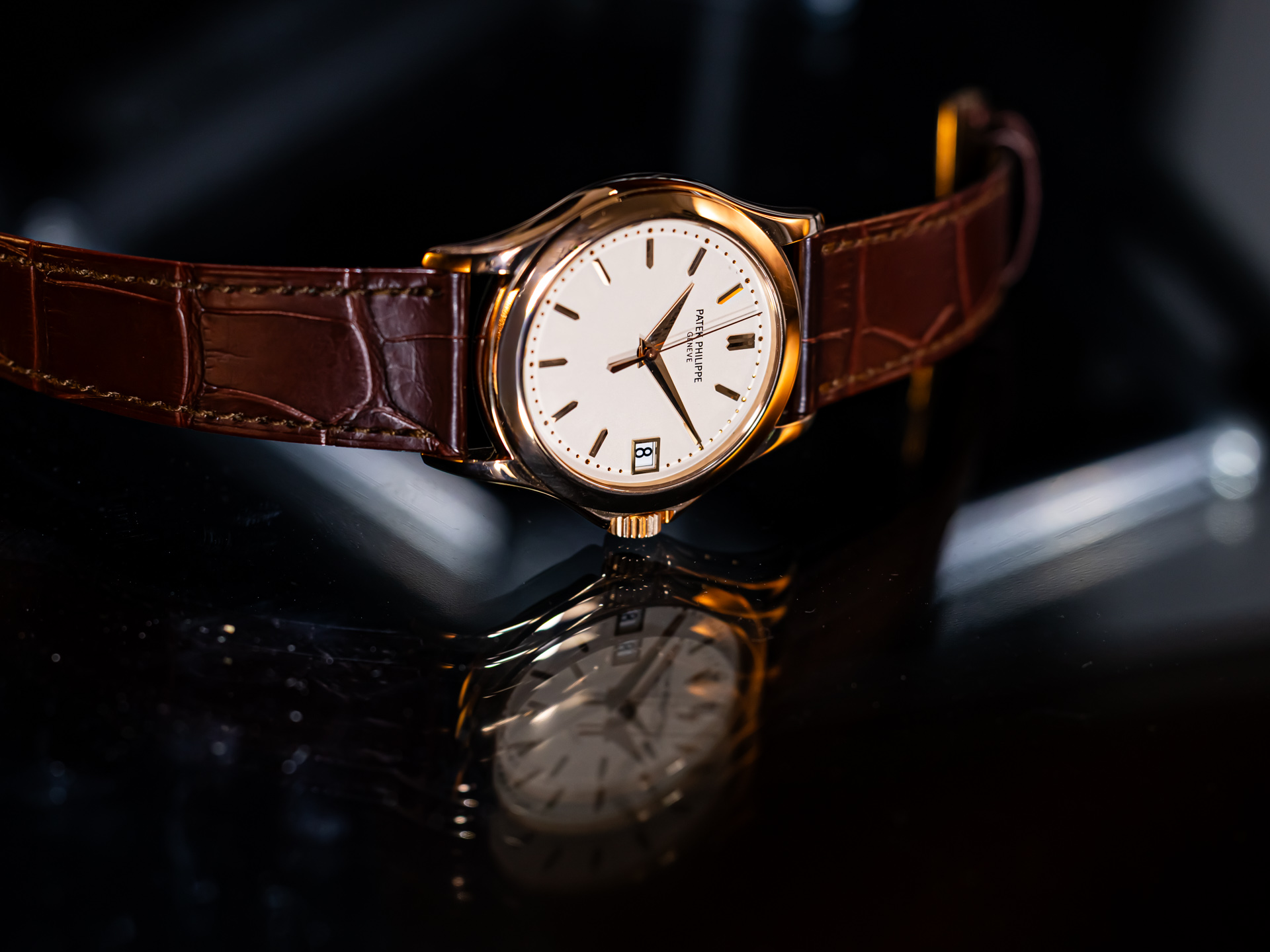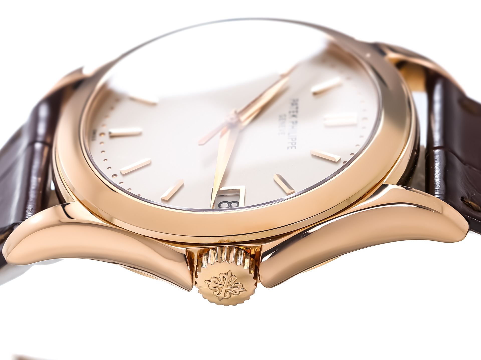 Introduced in the early 2000s, the Ref. 5127 represents a modern interpretation of the classic Calatrava, featuring a beautifully proportioned 37 mm case that offers contemporary wrist presence while remaining faithful to traditional dress-watch aesthetics. The silver opaline dial is distinguished by applied rose gold hour markers, dauphine hands, and a discreet date aperture at 3 o’clock, resulting in a clean, harmonious layout with exceptional legibility.