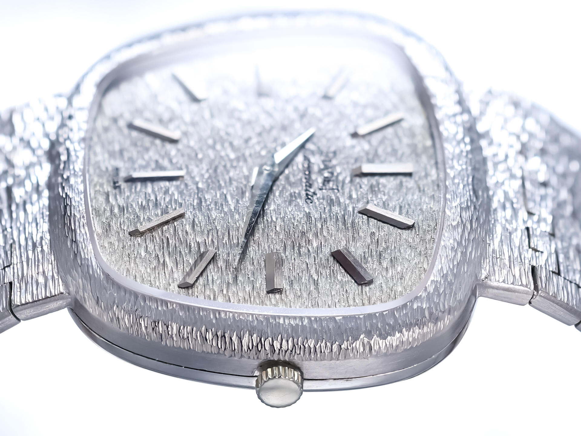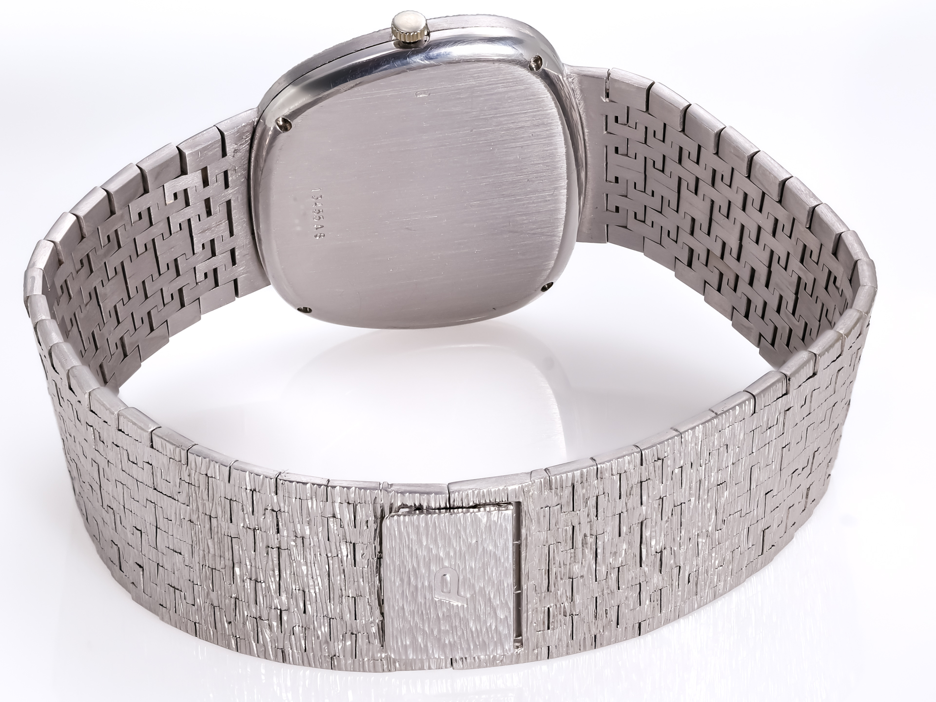 Crafted entirely in 18k white gold and dating to circa 1971, this remarkable watch is preserved in mint condition. It stands as a testament to Piaget’s celebrated expertise in blending refined watchmaking with innovative design and exceptional goldsmith craftsmanship.