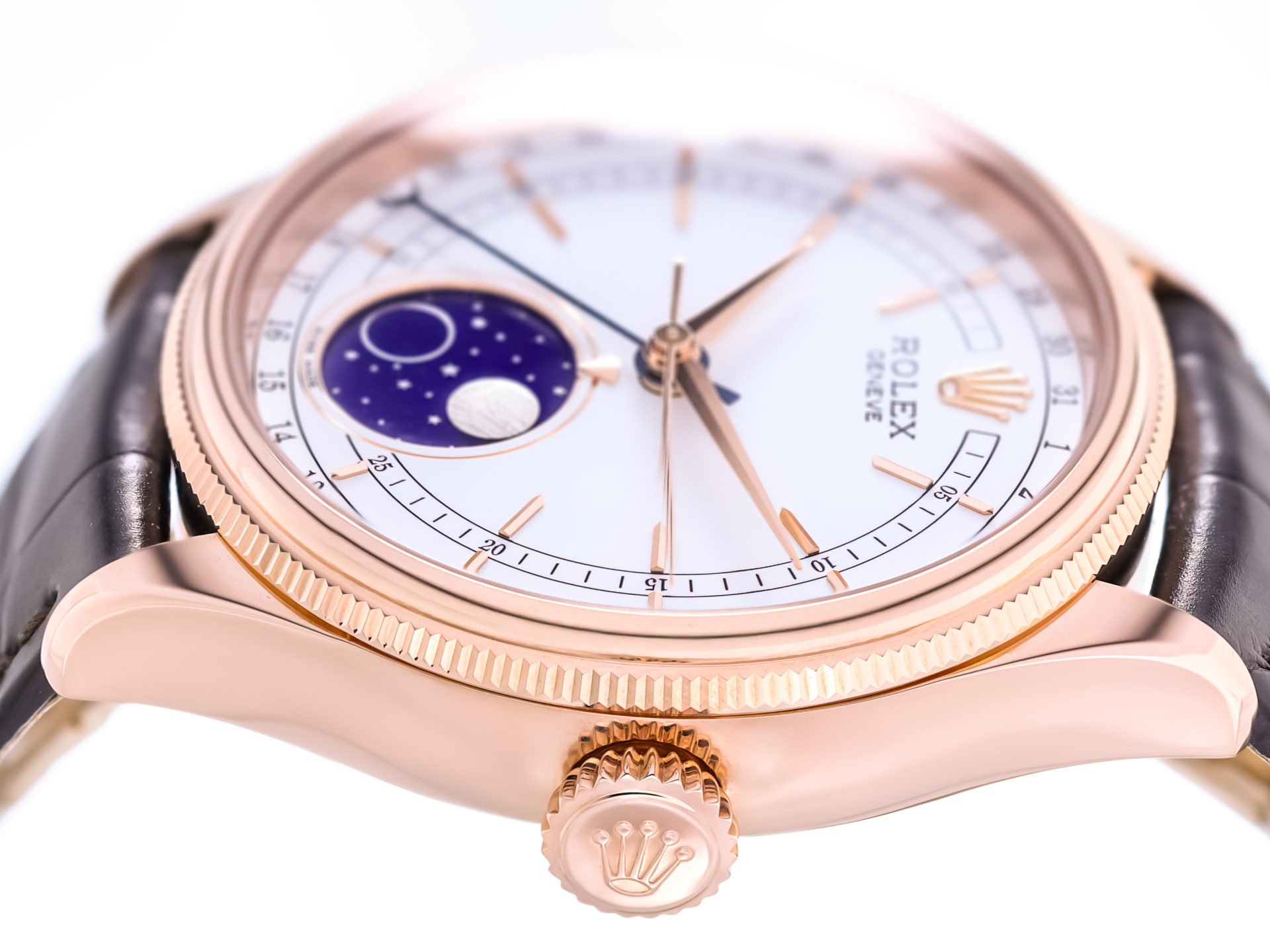 "A rare and refined piece within the modern Rolex lineup, the Cellini Moonphase combines traditional complications with contemporary execution, making it a distinguished addition to any serious collection.