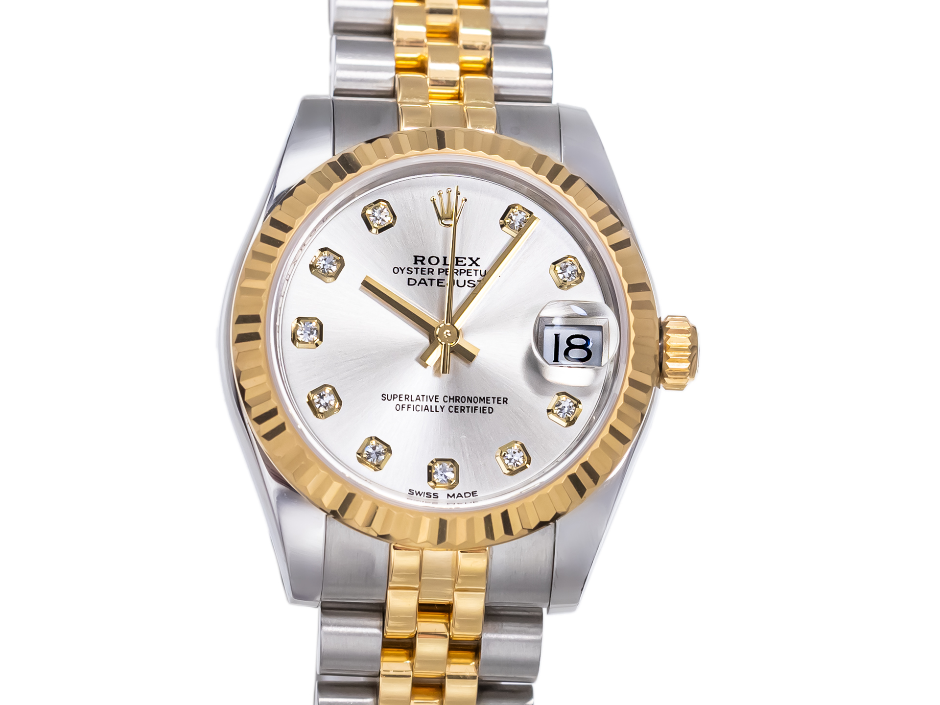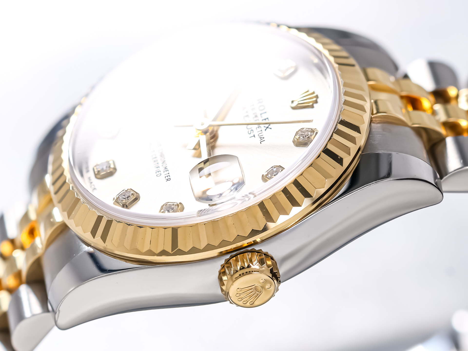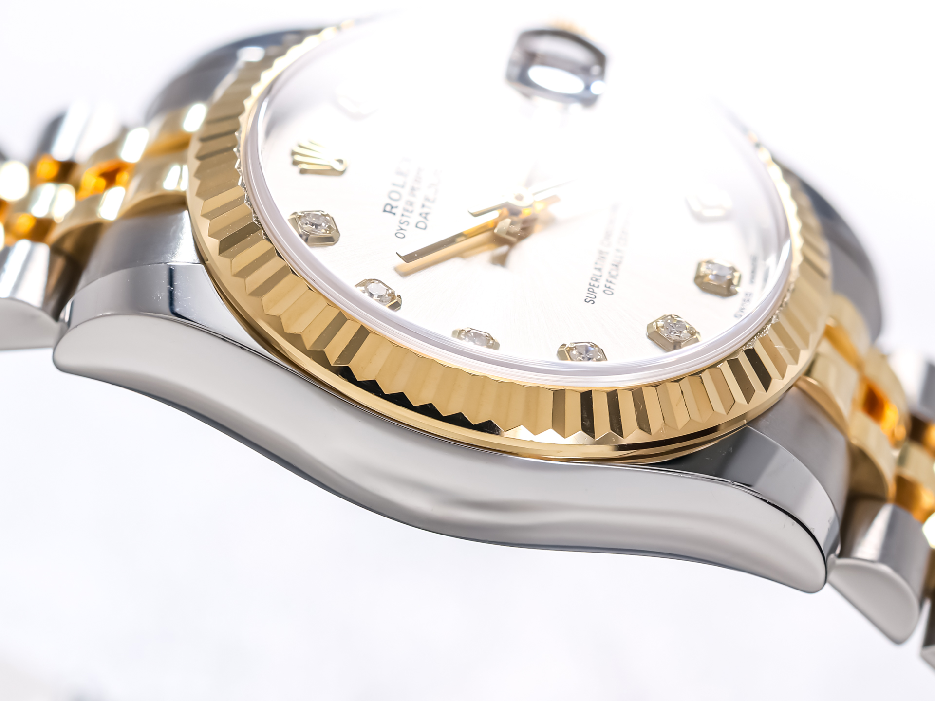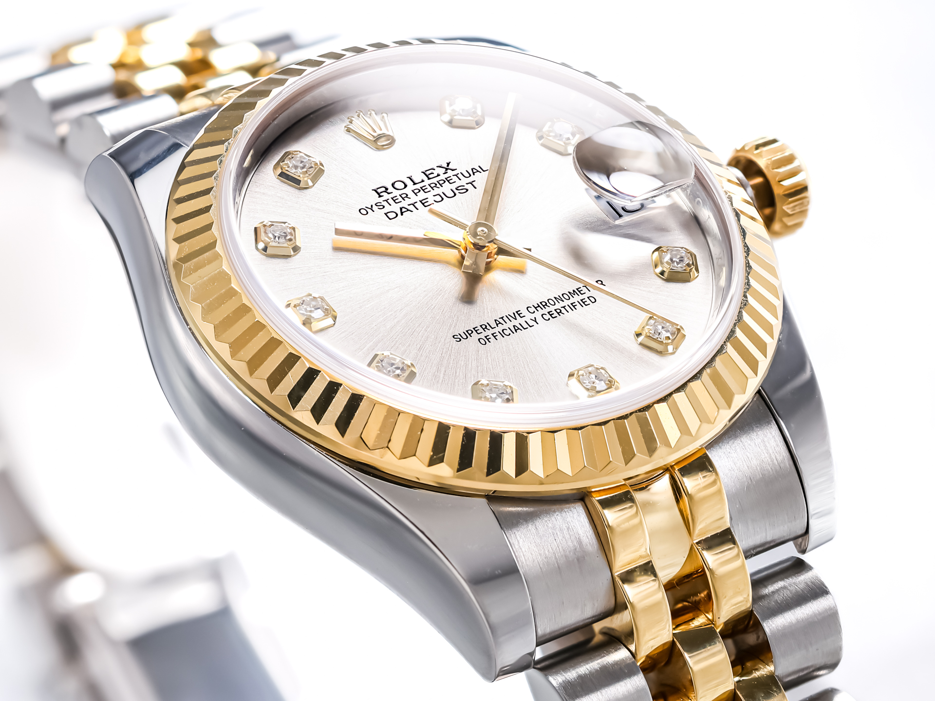This particular example features a refined silver dial, beautifully enhanced by diamond hour markers that add a subtle yet unmistakable touch of brilliance. The watch is fitted with the highly sought-after Jubilee bracelet in stainless steel and 18K yellow gold—renowned for its five-piece link construction, exceptional comfort, and elegant appearance. Originally introduced for the Datejust, the Jubilee bracelet perfectly complements the watch’s refined character.