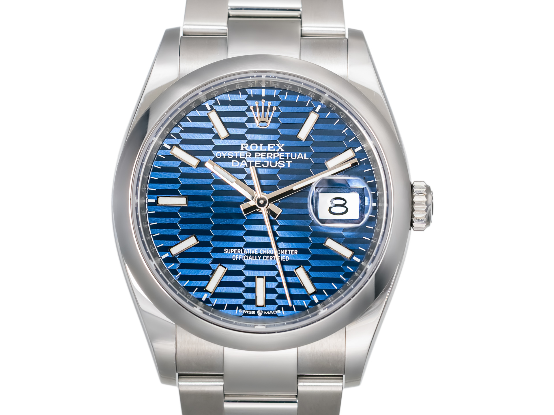 Rolex Datejust 36 – Ref. 126200 – Stainless Steel – Blue Motif Dial – Box & Papers (2023) – New-Like – Full Set