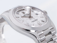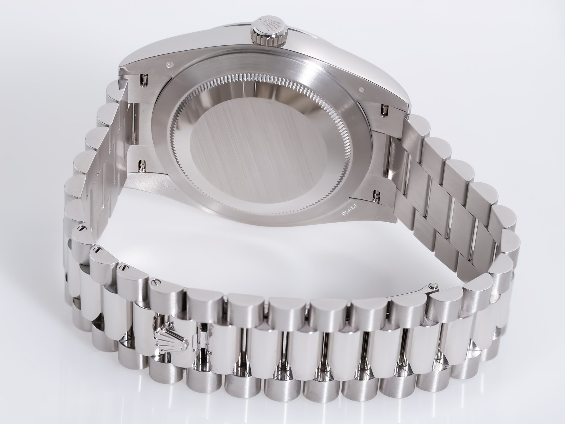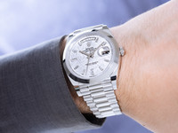 We are proud to present this exceptional, new-like ROLEX DAY-DATE Ref. 228206 in 950 platinum, featuring the iconic President bracelet.