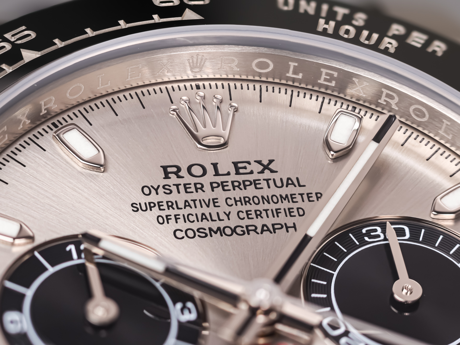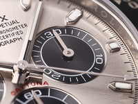 The striking silver dial with contrasting black chronograph sub-dials delivers outstanding legibility and a timeless aesthetic prized by collectors. Applied hour markers and hands filled with Rolex’s Chromalight luminous material ensure optimal readability in all conditions, while the balanced dial layout remains instantly recognizable as a true Cosmograph Daytona.