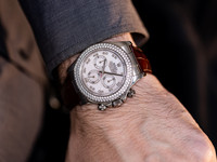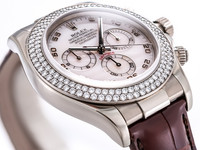 A Rare and Striking White Gold Chronograph with Mother-of-Pearl Dial and Factory Diamond Bezel