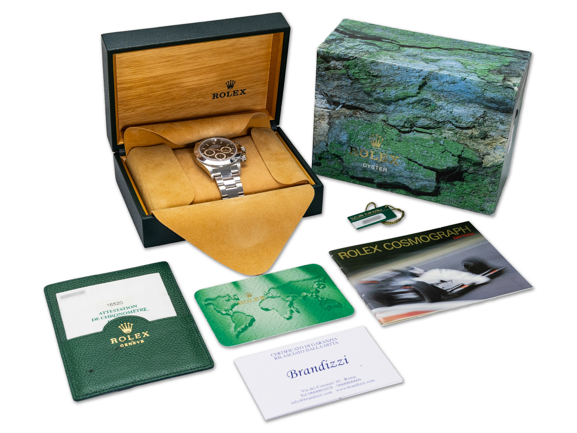 ROLEX DAYTONA COSMOGRAPH – Ref. 16520 – Stainless Steel – Automatic – Zenith El Primero Caliber 4030 – A-Series – Black “Swiss Made” Dial – Full Set – Unworn / NOS — Green Sticker