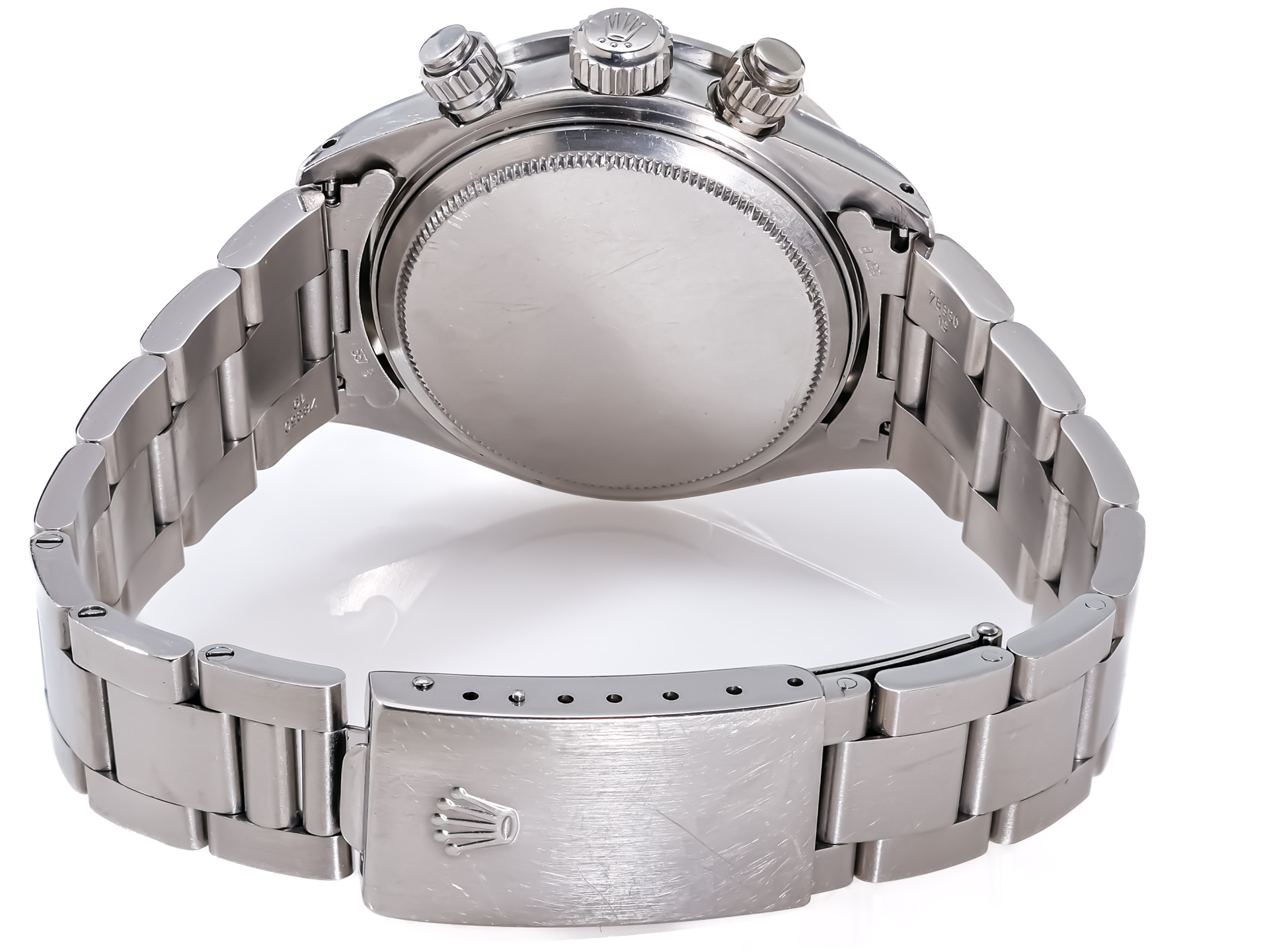 At its heart beats the Rolex Caliber 727, a hand-wound chronograph movement descended from the renowned Valjoux 72, celebrated for its precision, reliability, and proven performance in motorsport timing. The mechanism winds smoothly and performs to specification, underscoring Rolex’s uncompromising craftsmanship of the era.