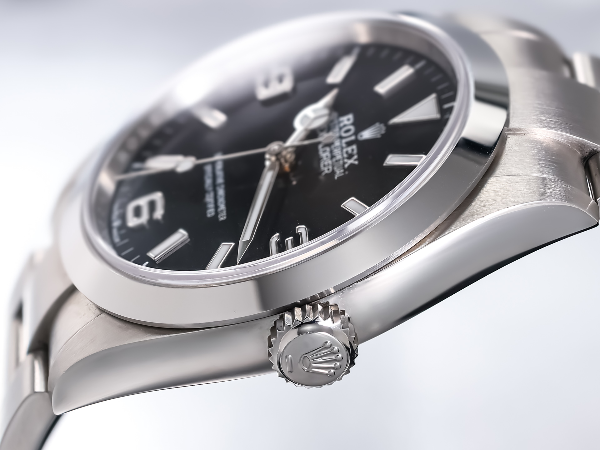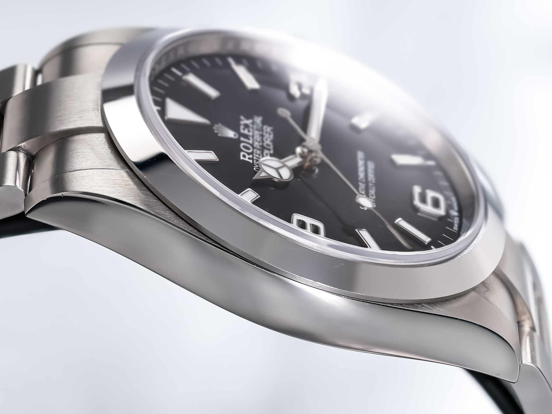 The dial is rendered in Rolex’s signature glossy black, adorned with luminous applied indices and the iconic 3-6-9 Arabic numerals—hallmarks of the Explorer lineage. The case is paired with the Oyster bracelet, equipped with an Easylink comfort extension system, ensuring both security and comfort on the wrist.