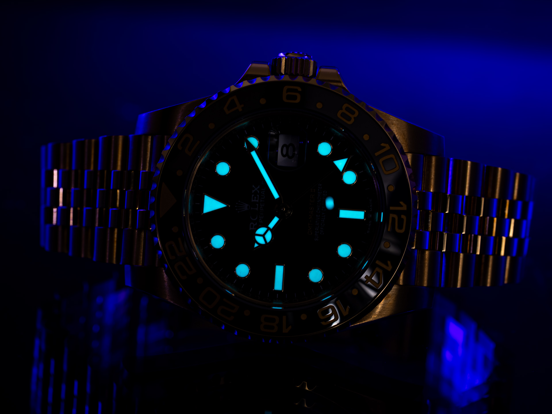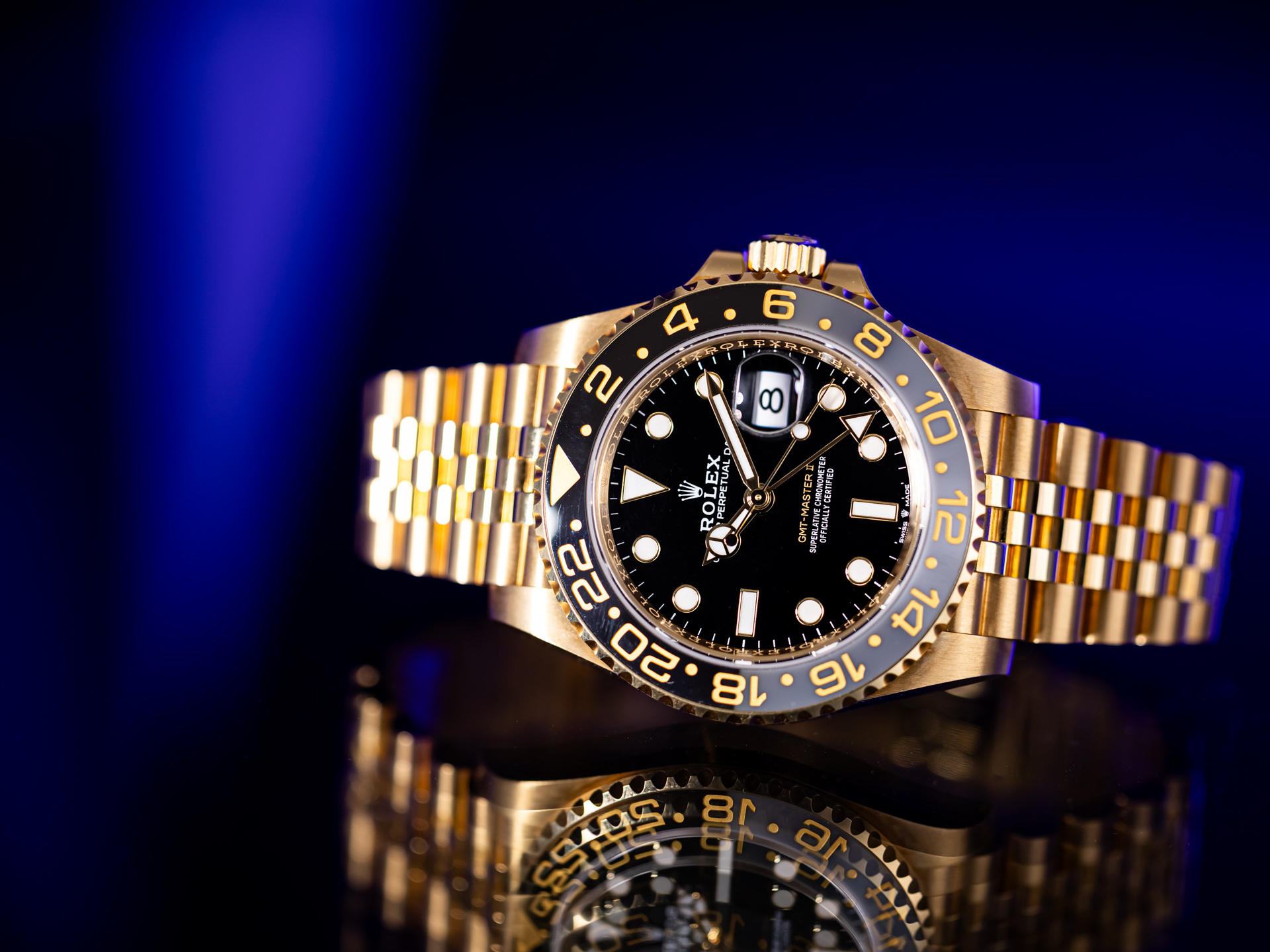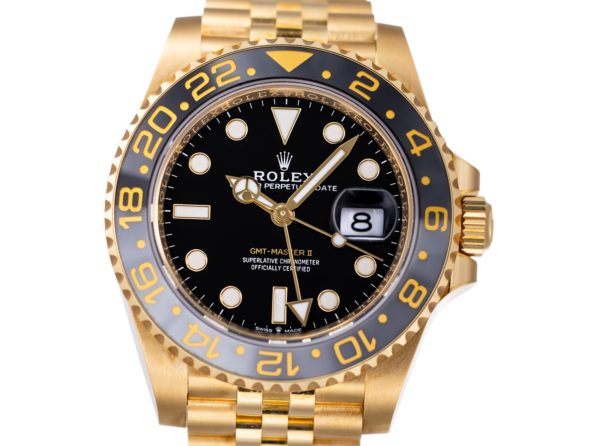 ROLEX GMT-Master II – Reference 126718GRNR – 18k Yellow Gold – Jubilee Bracelet – Box & Papers 2024 – Like New
