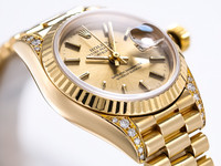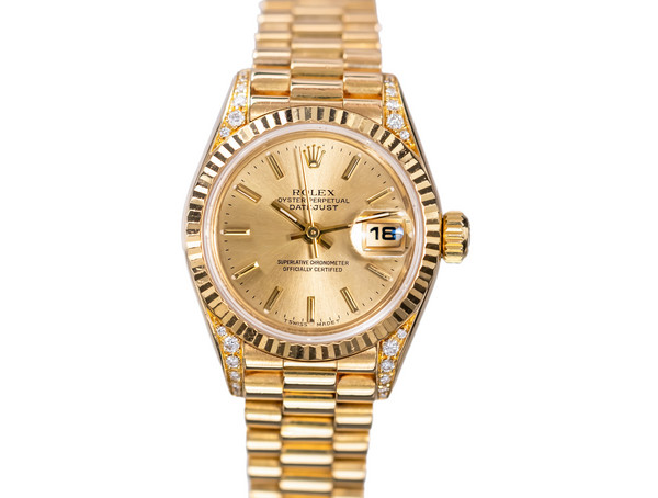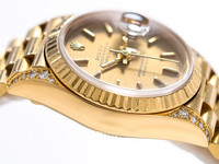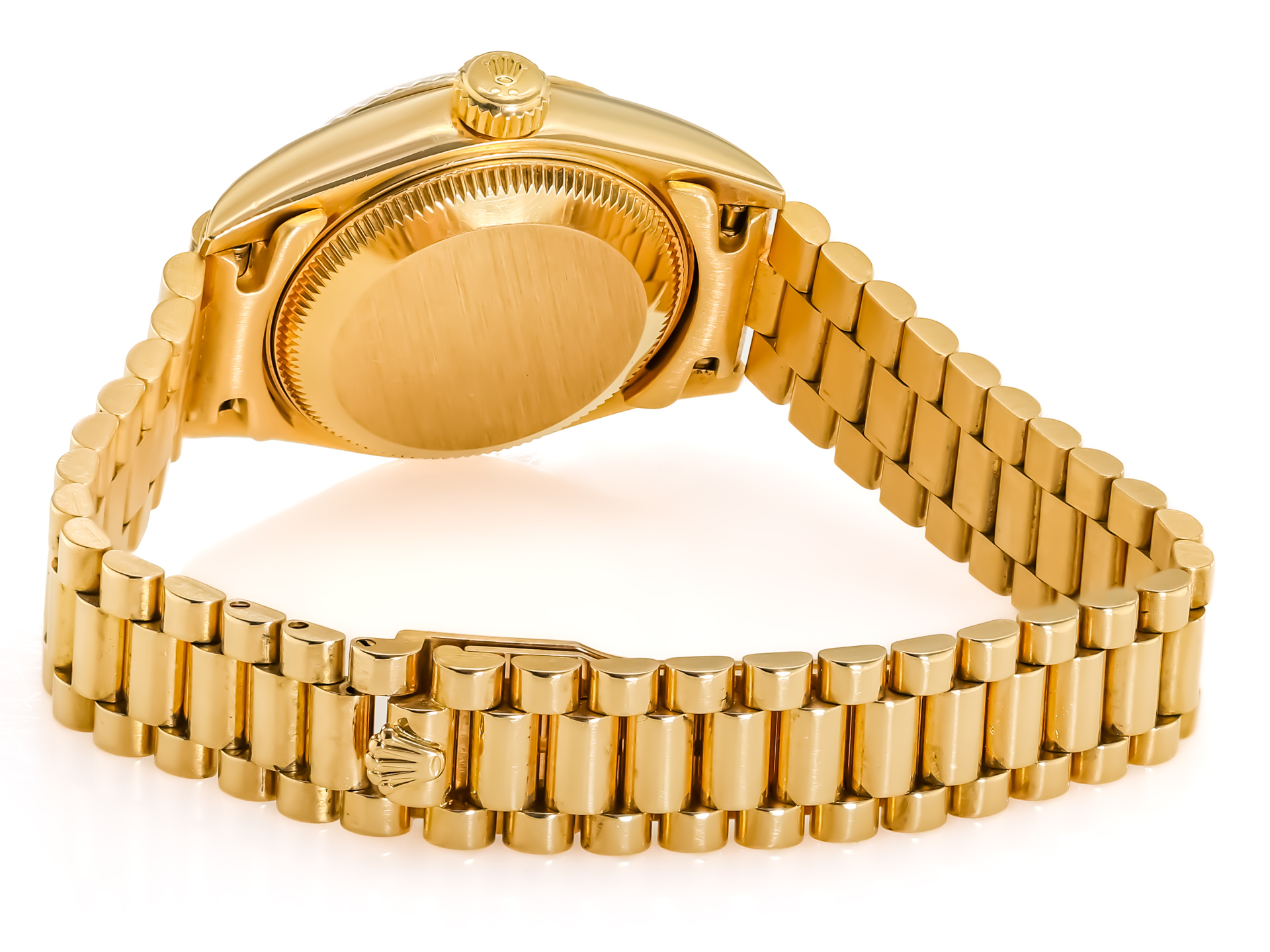 We are pleased to offer this elegant and luxurious Rolex Lady-Datejust Ref. 69238, crafted in solid 18k yellow gold with gold President bracelet.