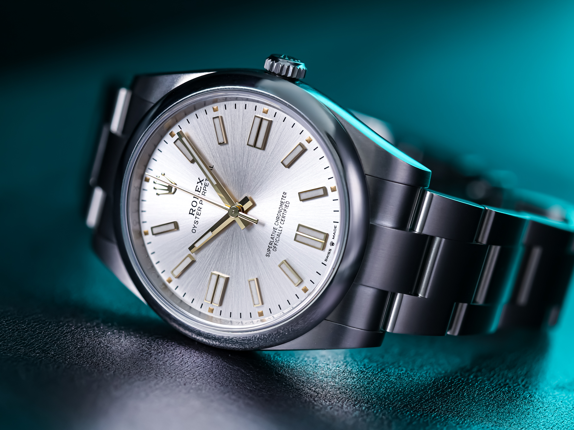 "A versatile and elegant timepiece, the Oyster Perpetual 41 is equally at home in formal settings or everyday wear."